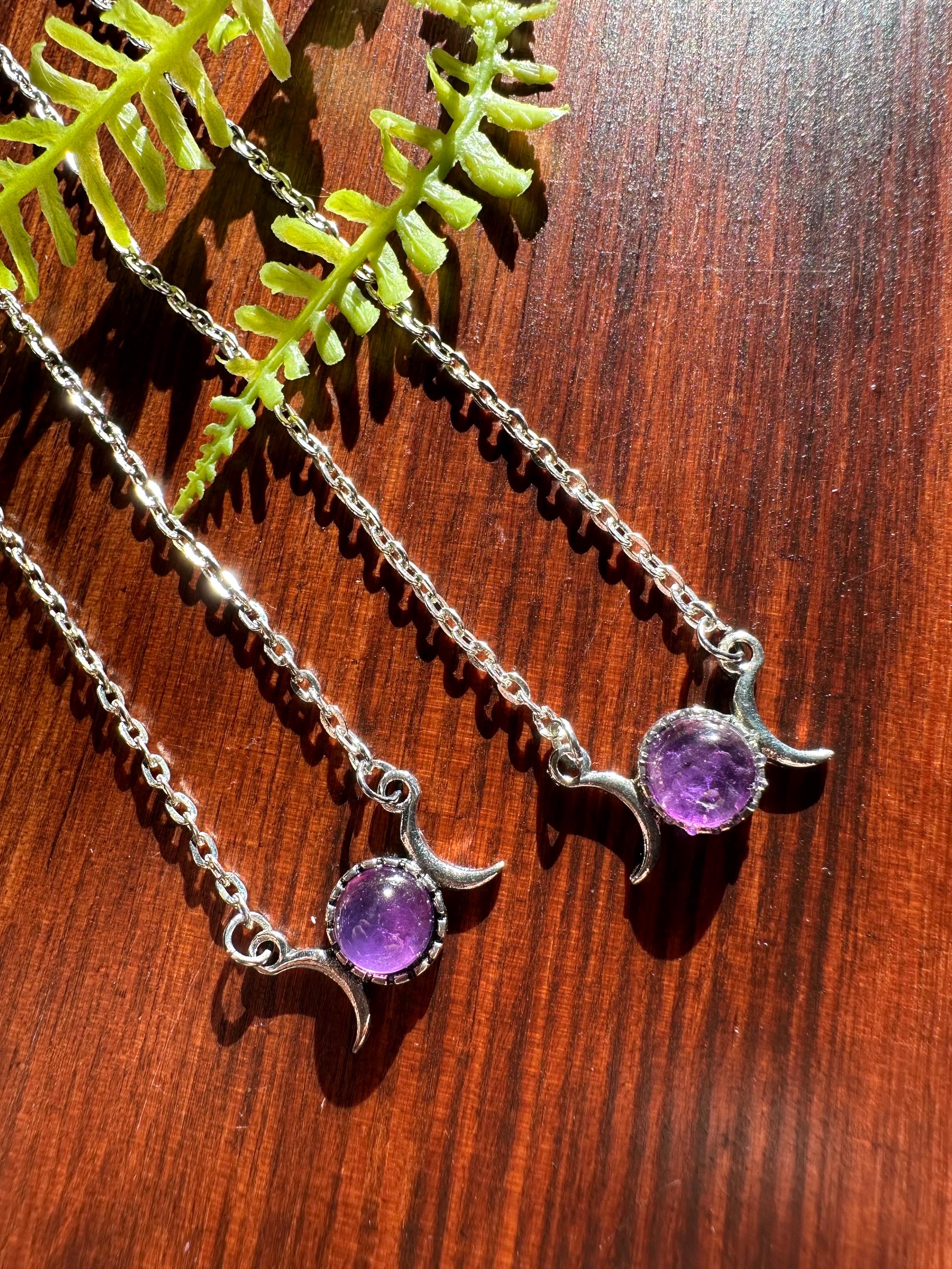 This listing is for one individual necklace. You will receive one of the two that are displayed in the listed photos. The necklace is roughly 19 inches long and the amethyst center stone is roughly 8mm.