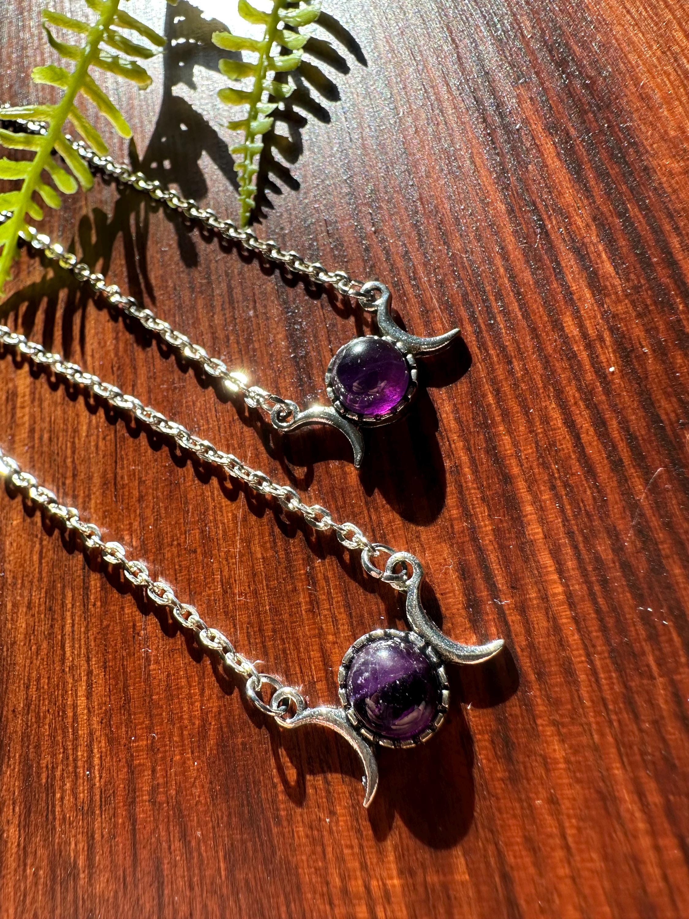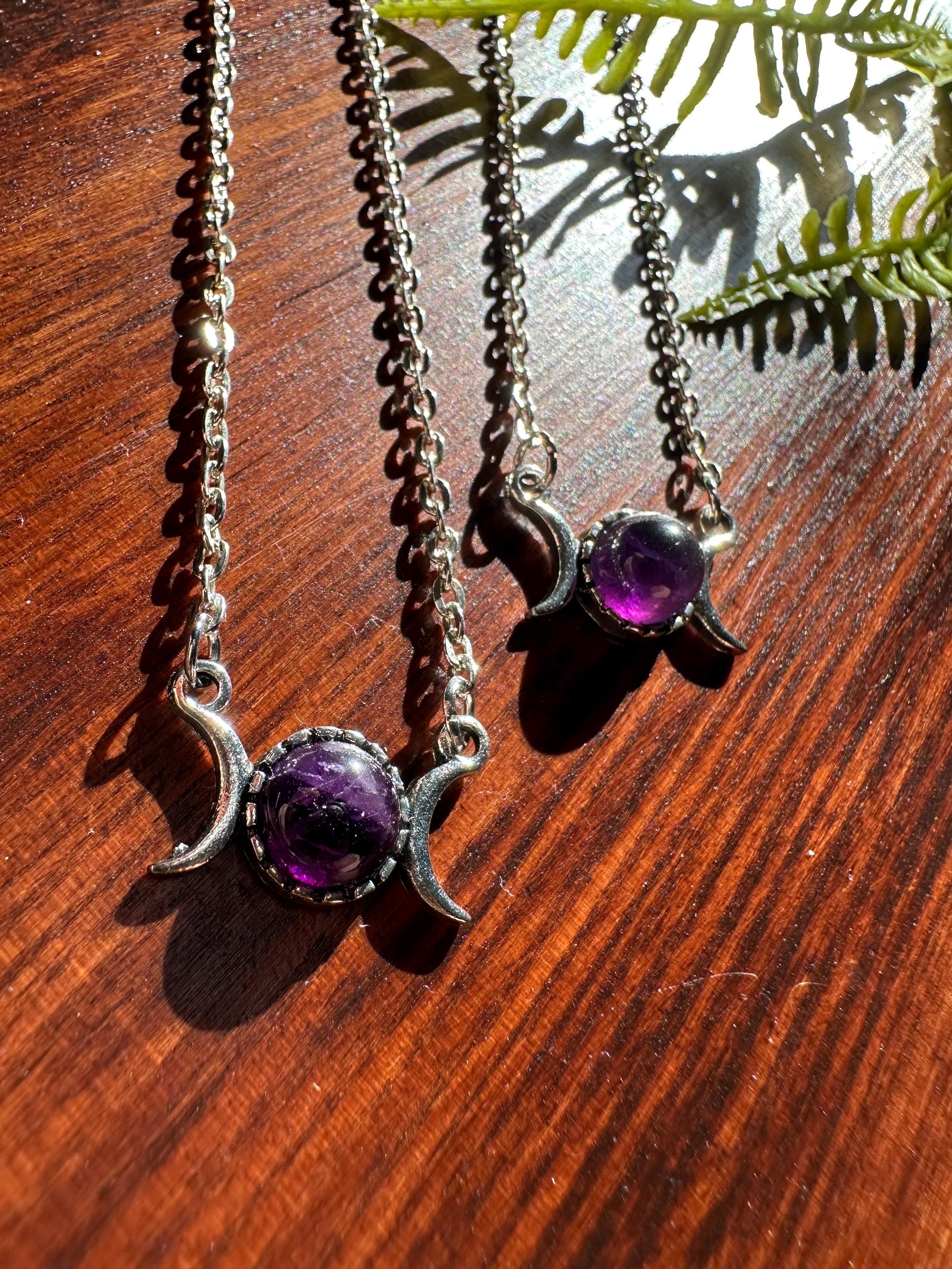This listing is for one individual necklace. You will receive one of the two that are displayed in the listed photos. The necklace is roughly 19 inches long and the amethyst center stone is roughly 8mm.