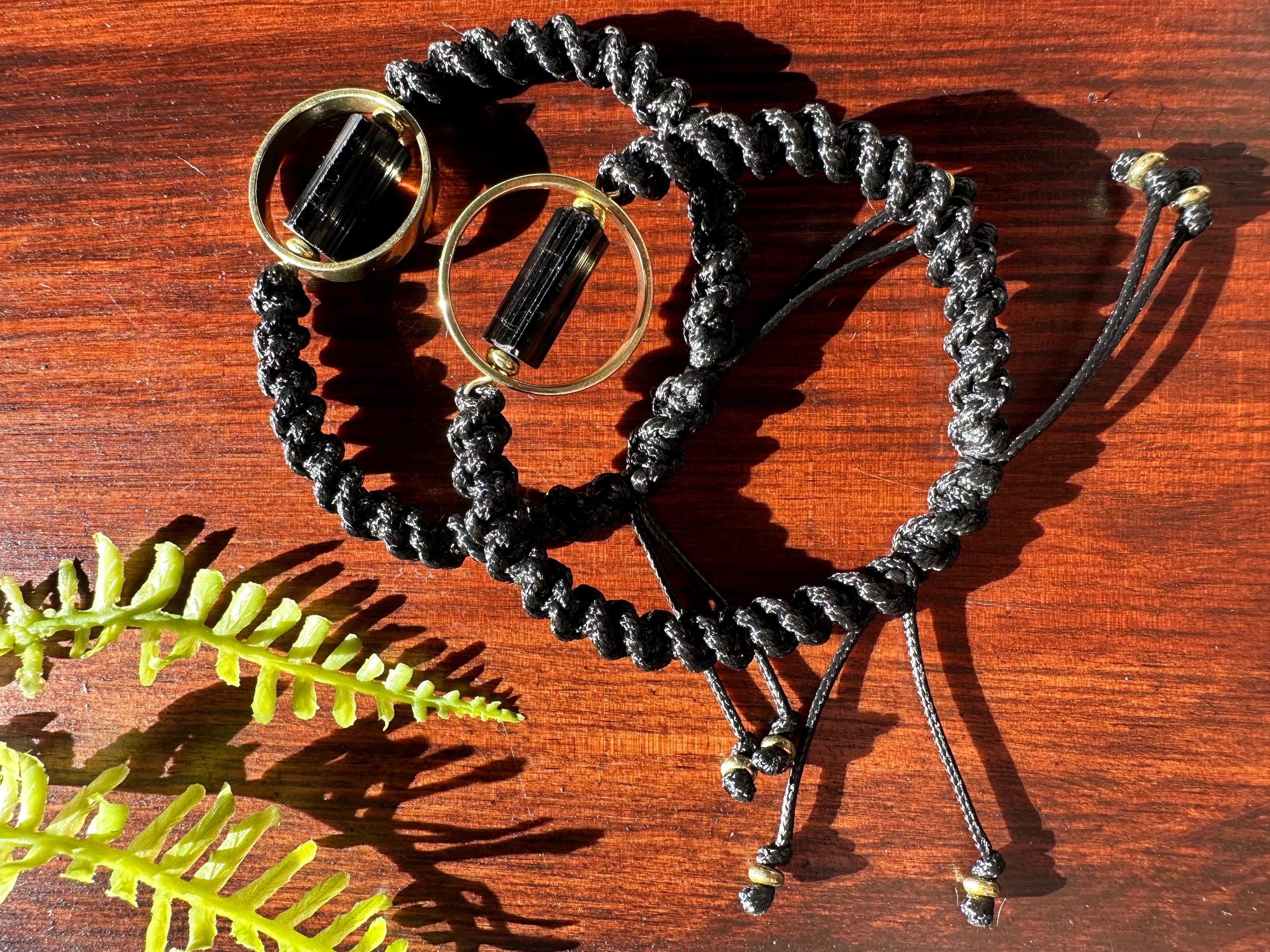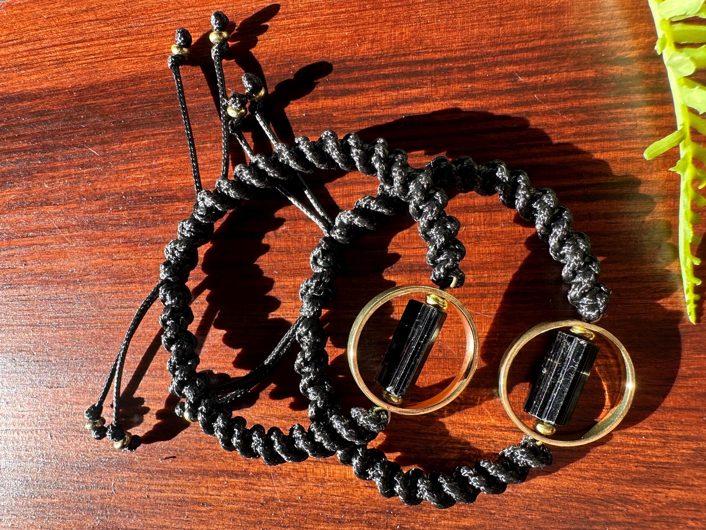 Adjustable Black Corded Tourmaline Bracelet