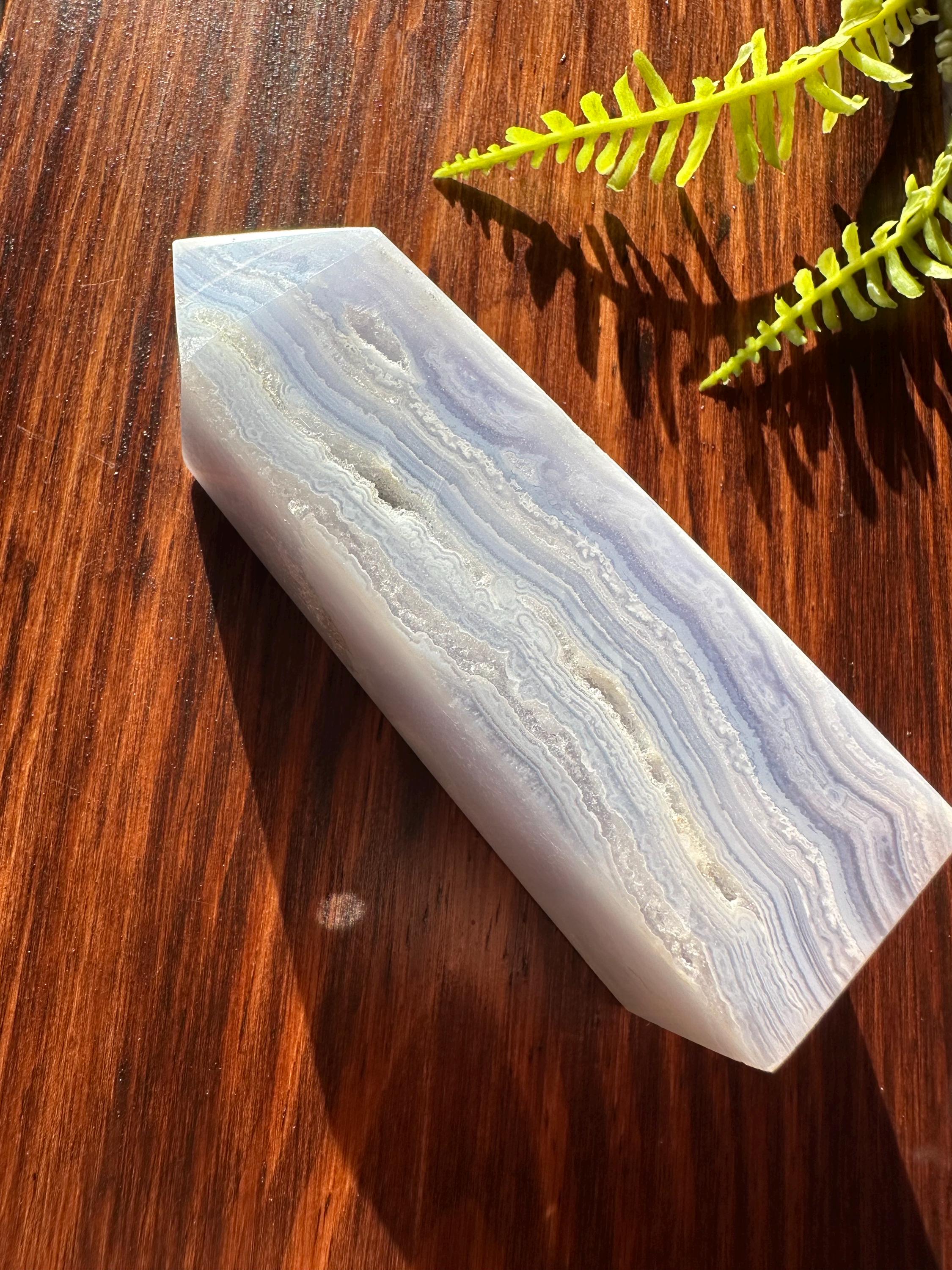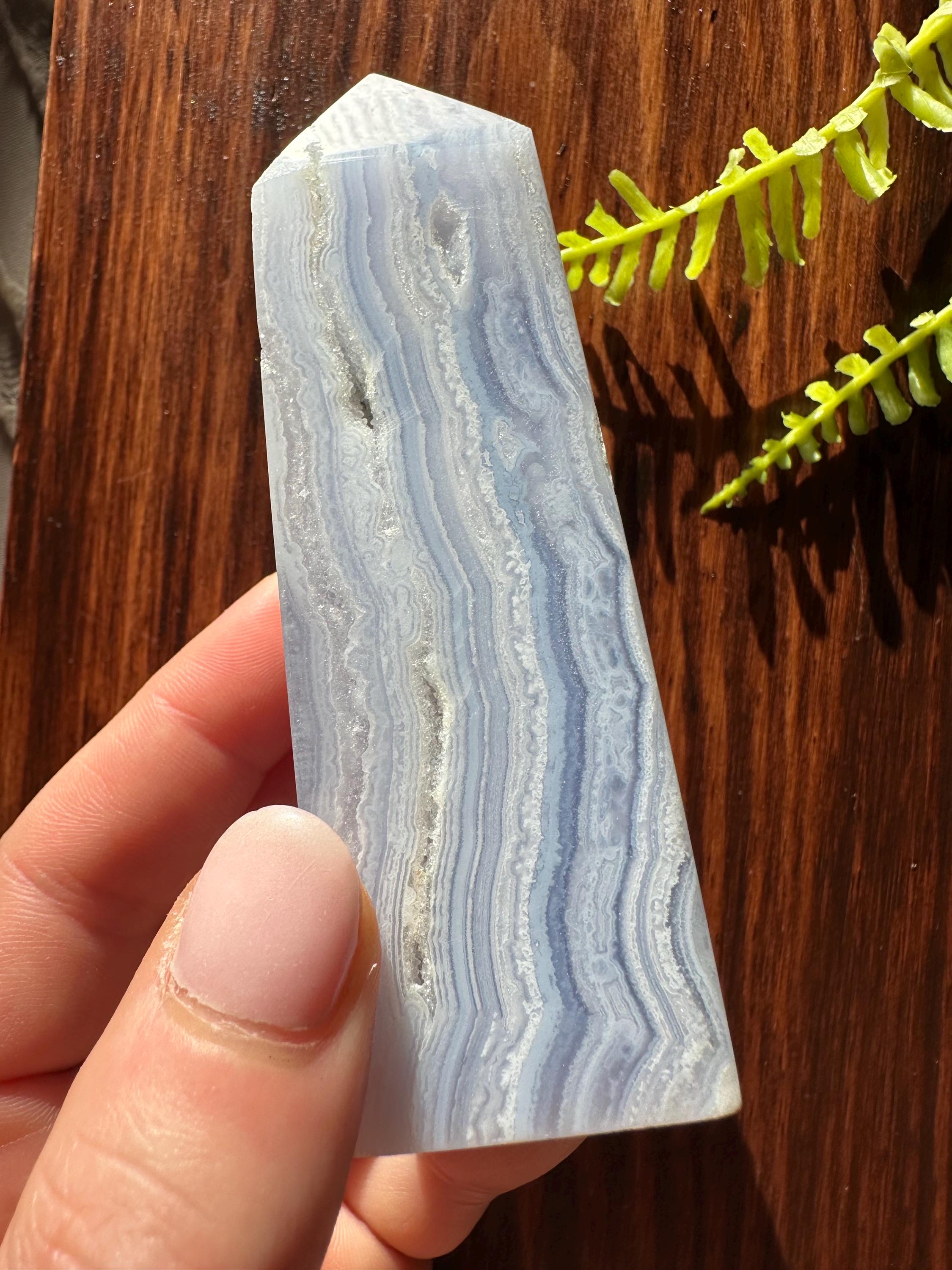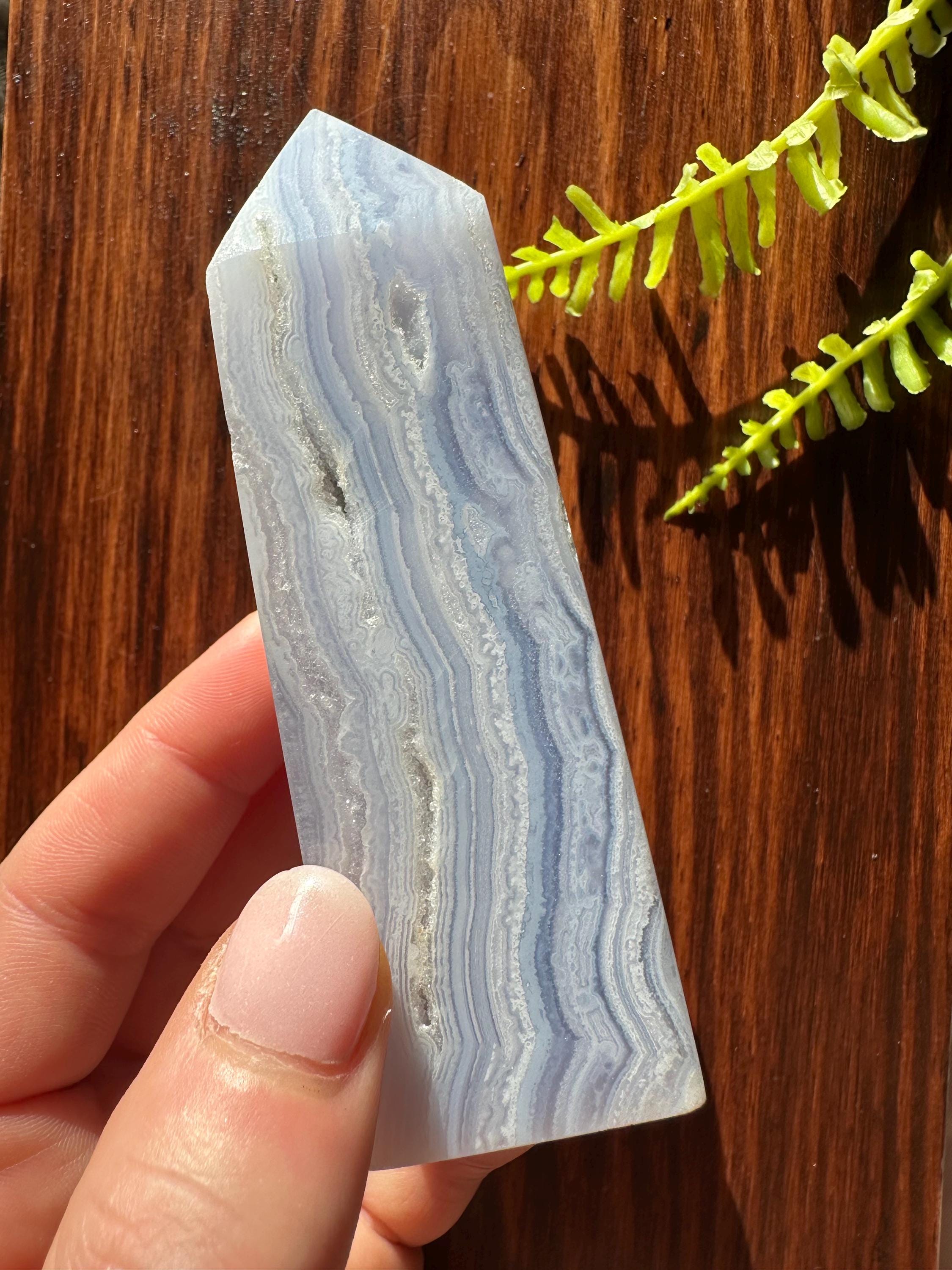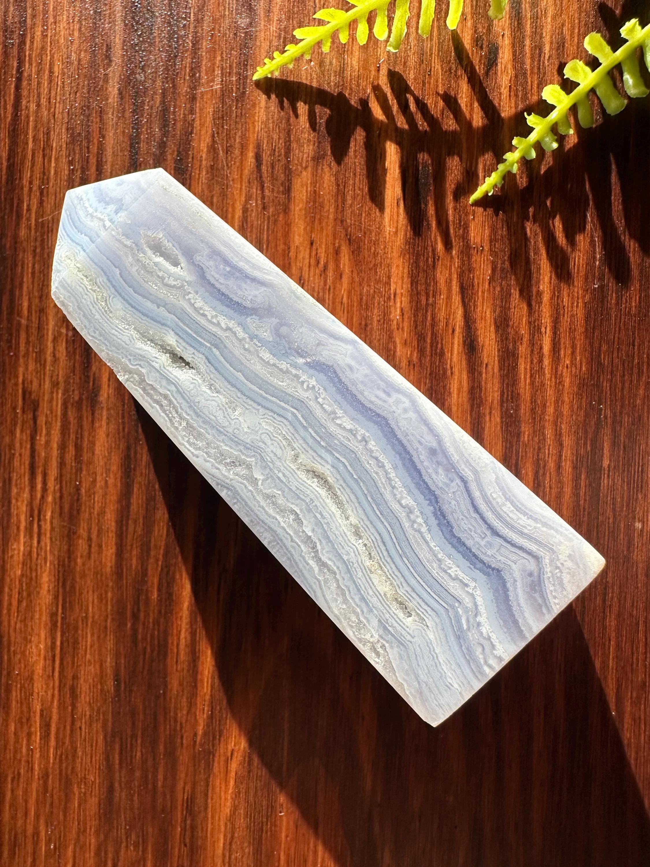 This blue lace chalcedony is absolutely captivating, with tiny druzy pockets and phenomenal lace.