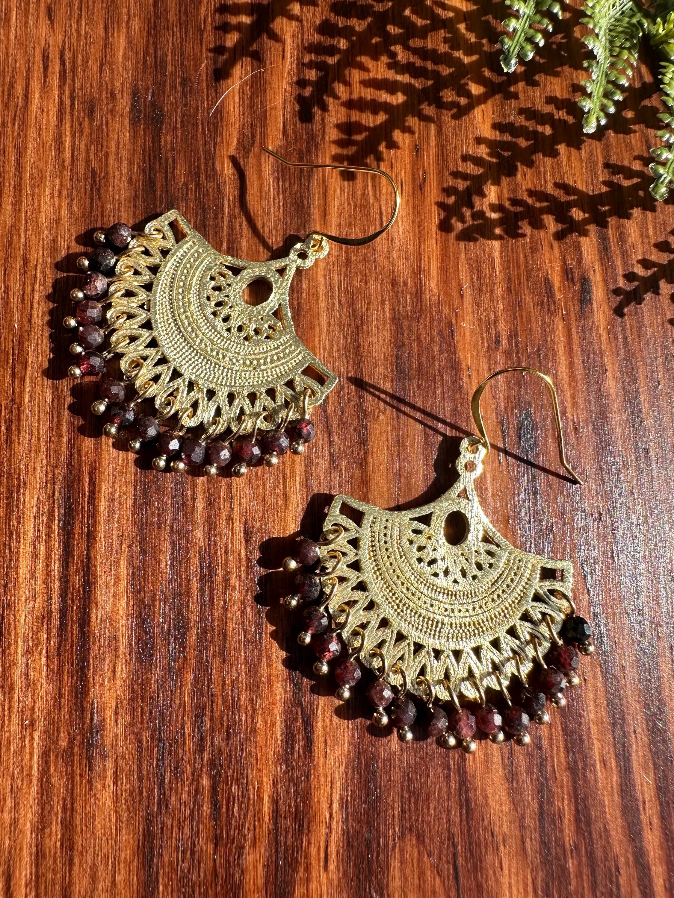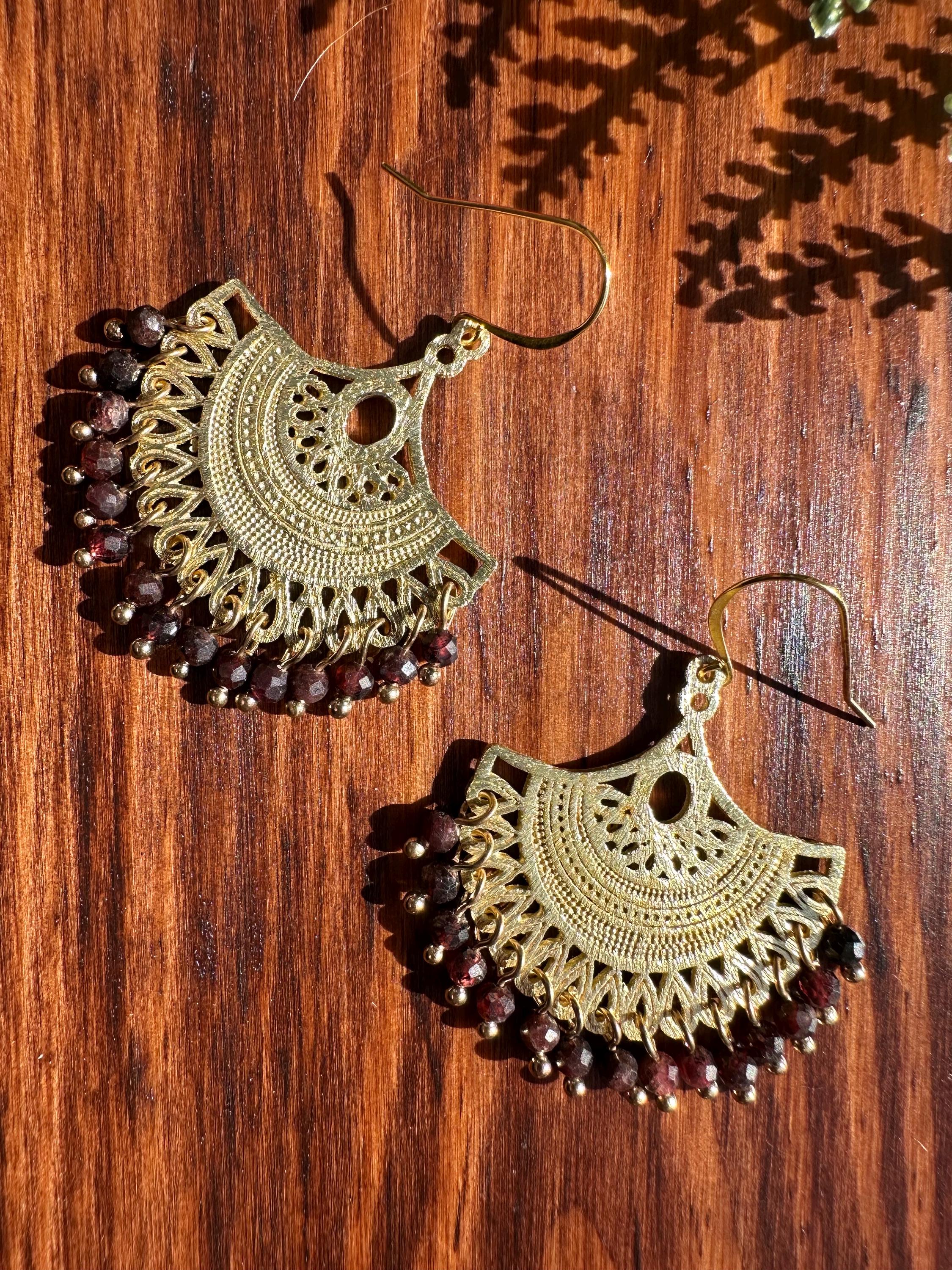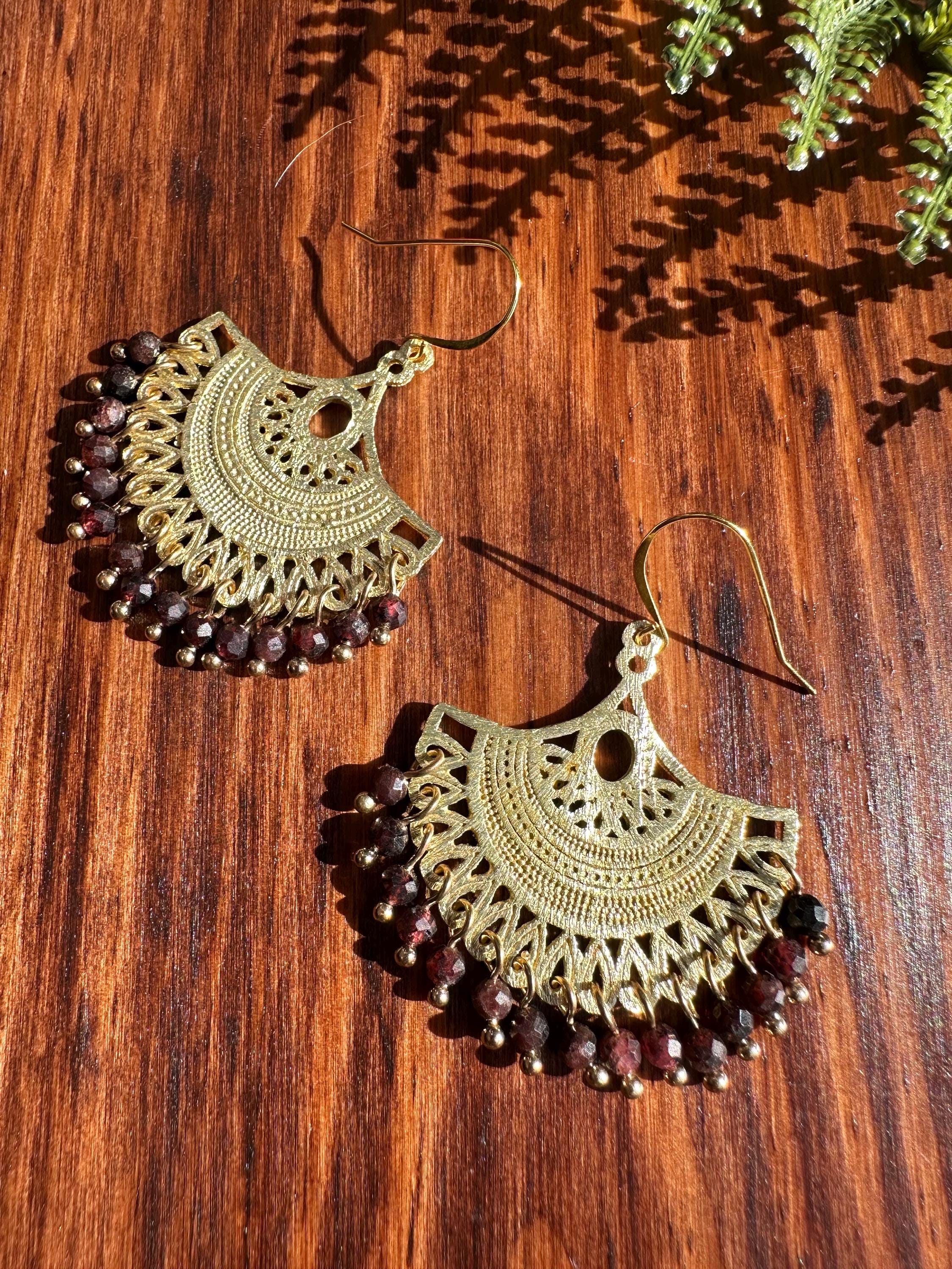 These earrings feature a flow of 4mm faceted garnet beads.