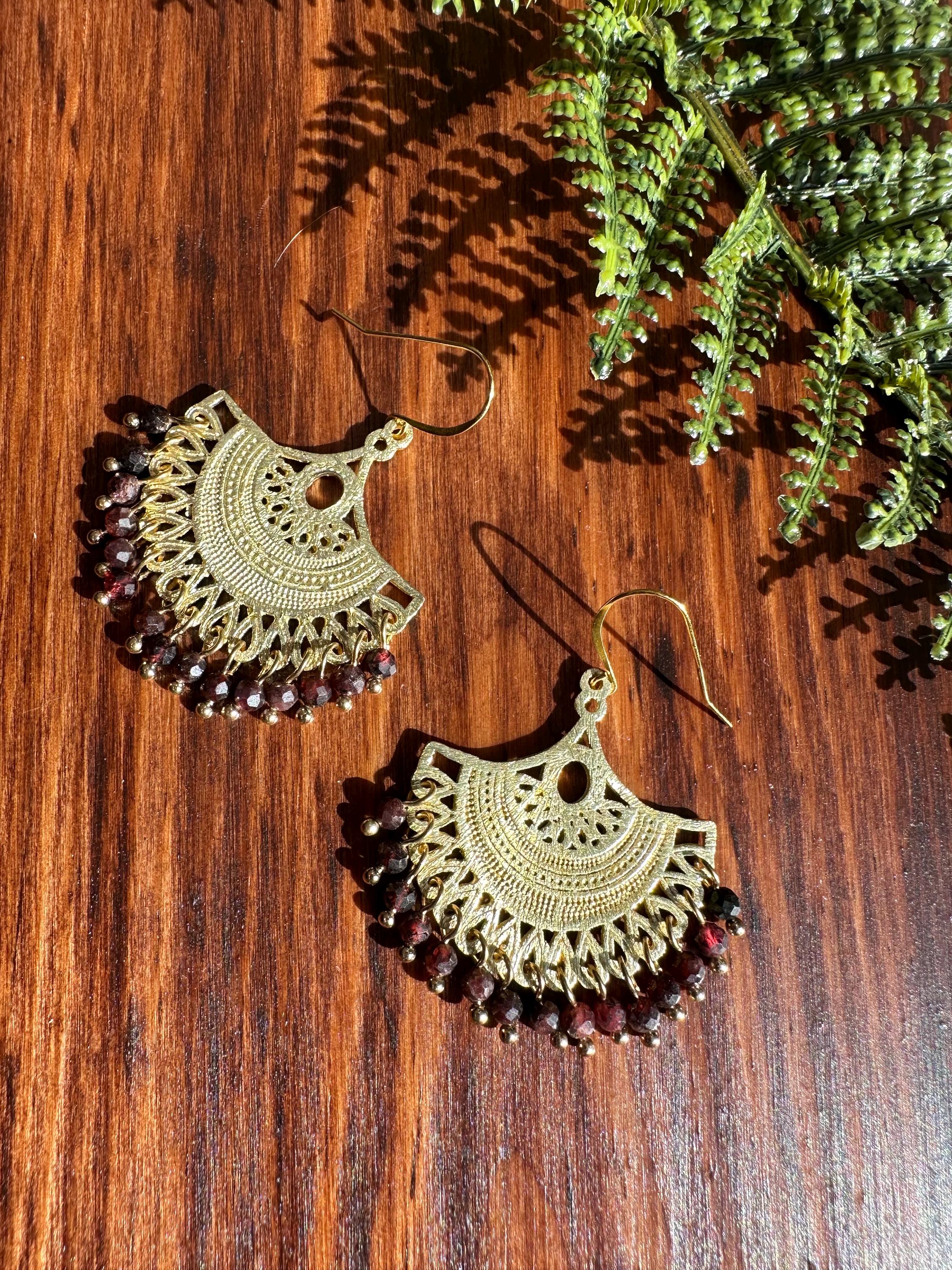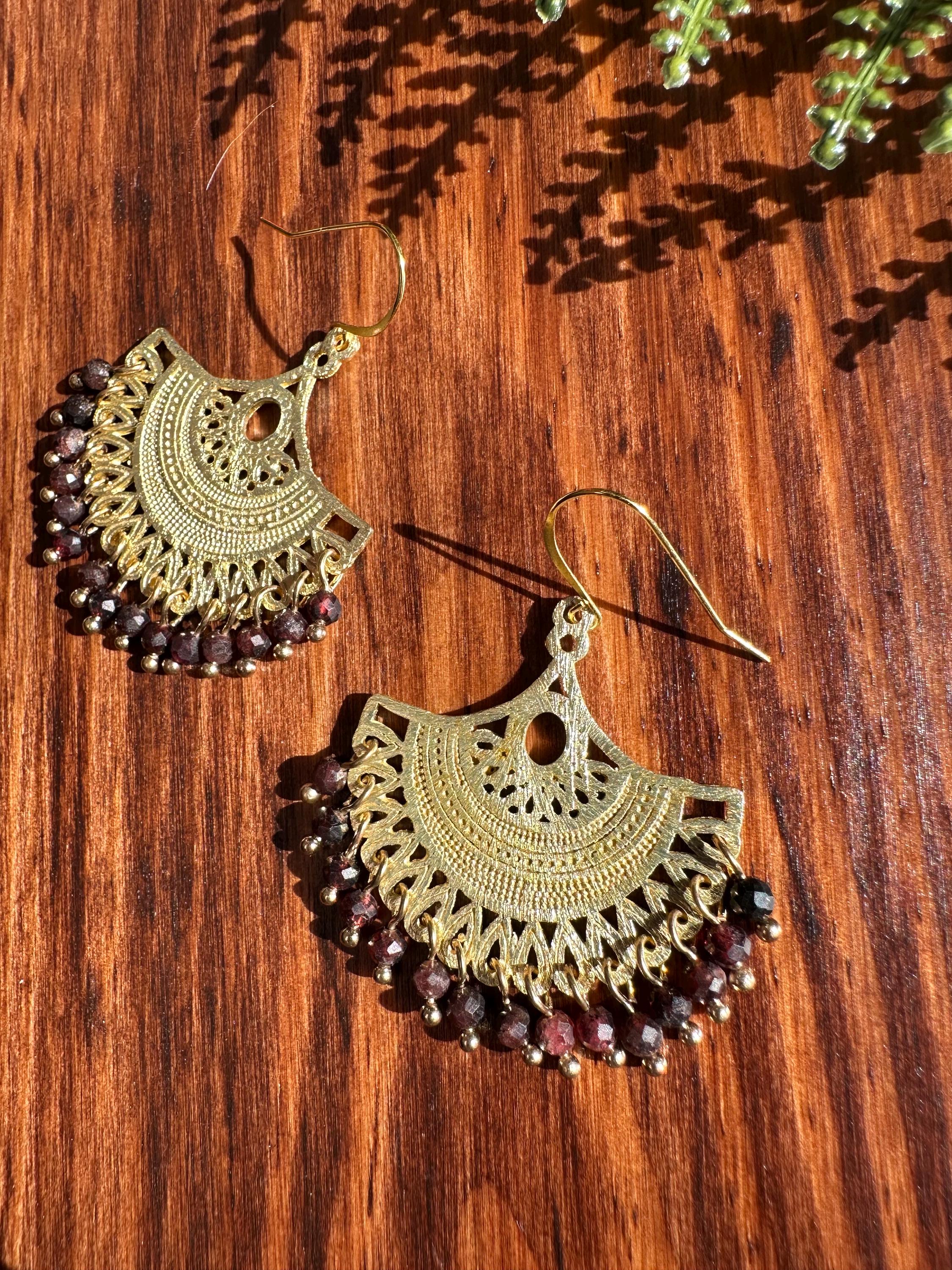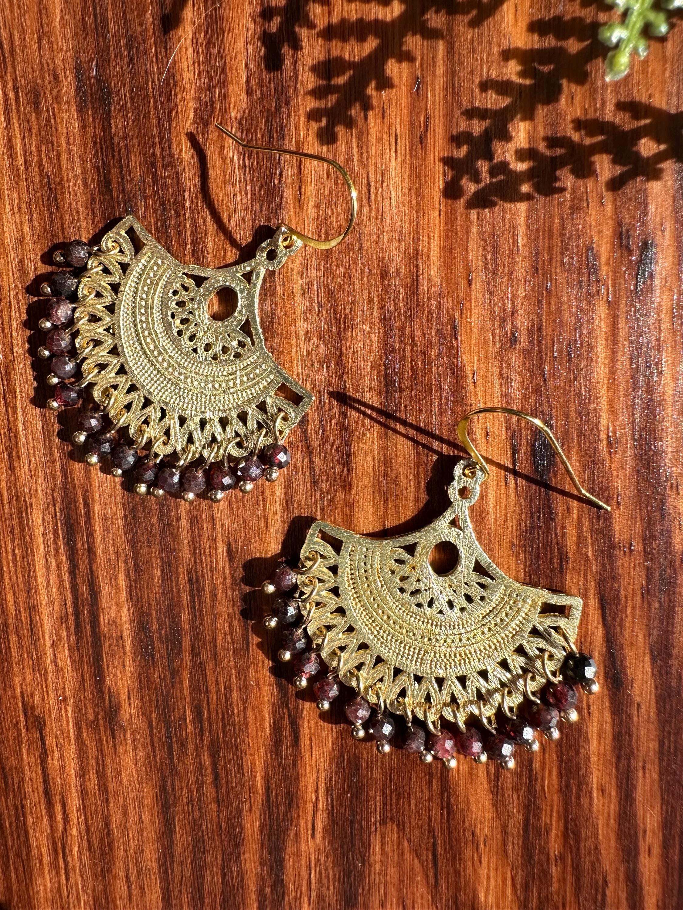 These earrings feature a flow of 4mm faceted garnet beads.