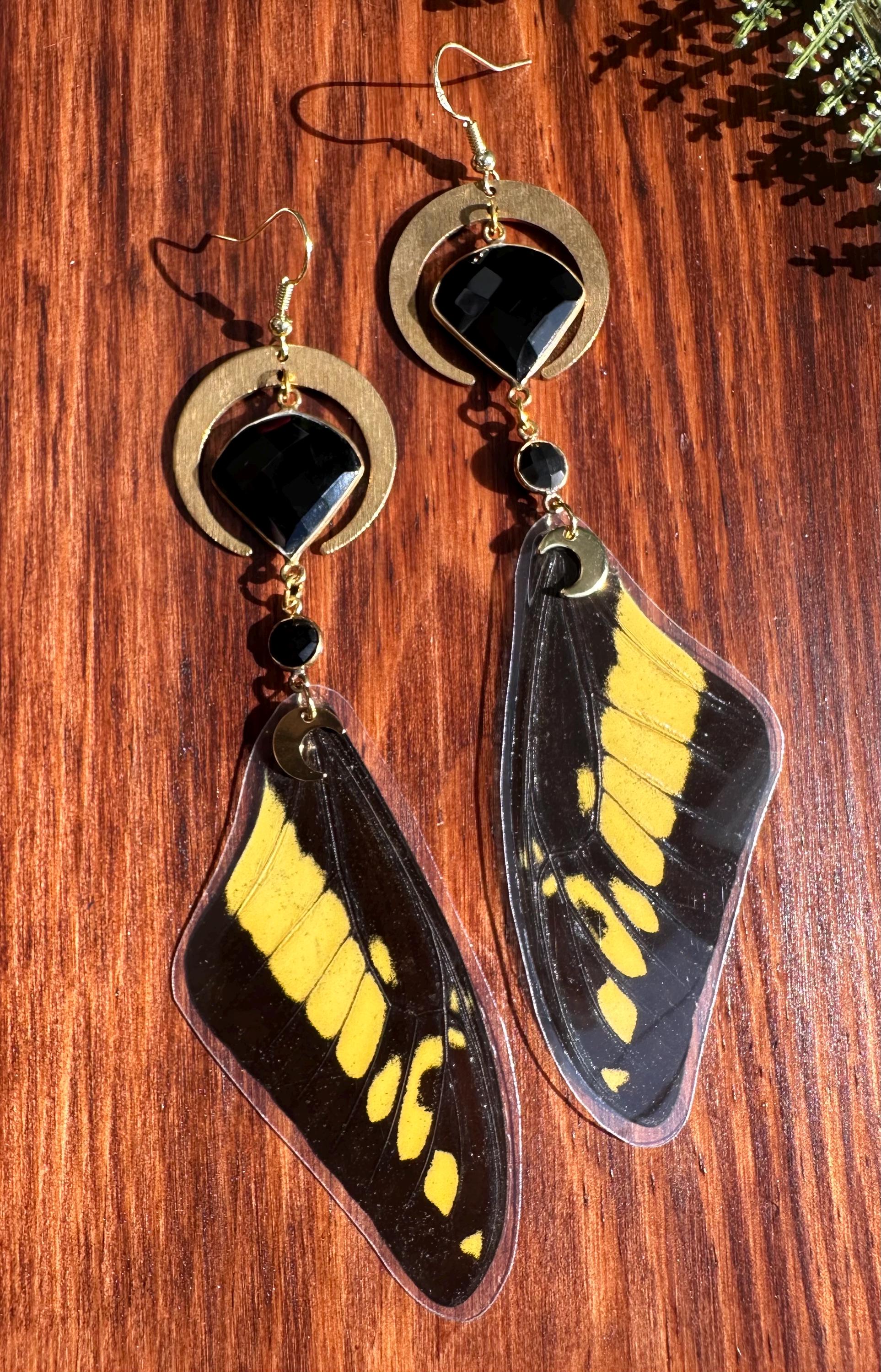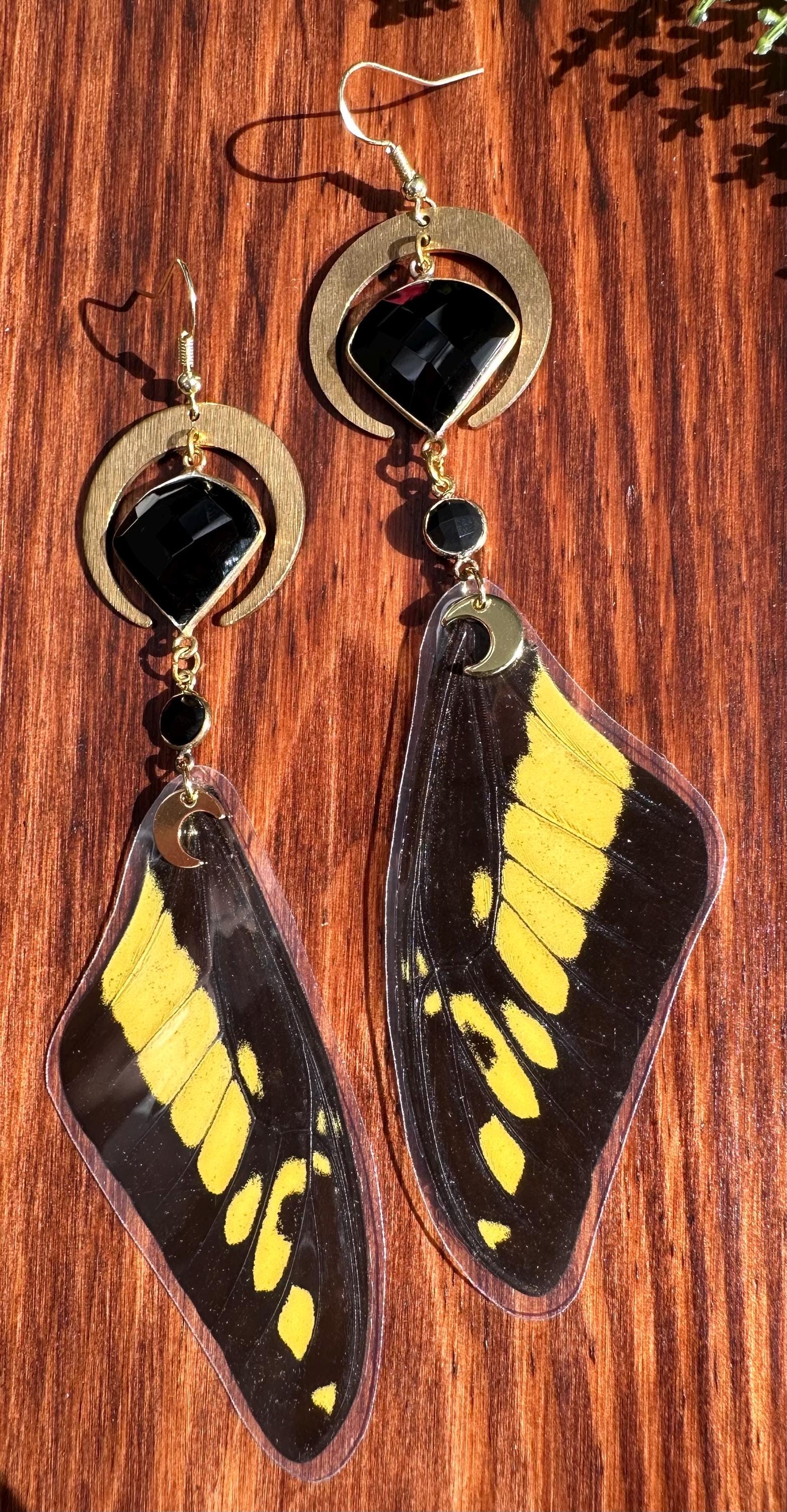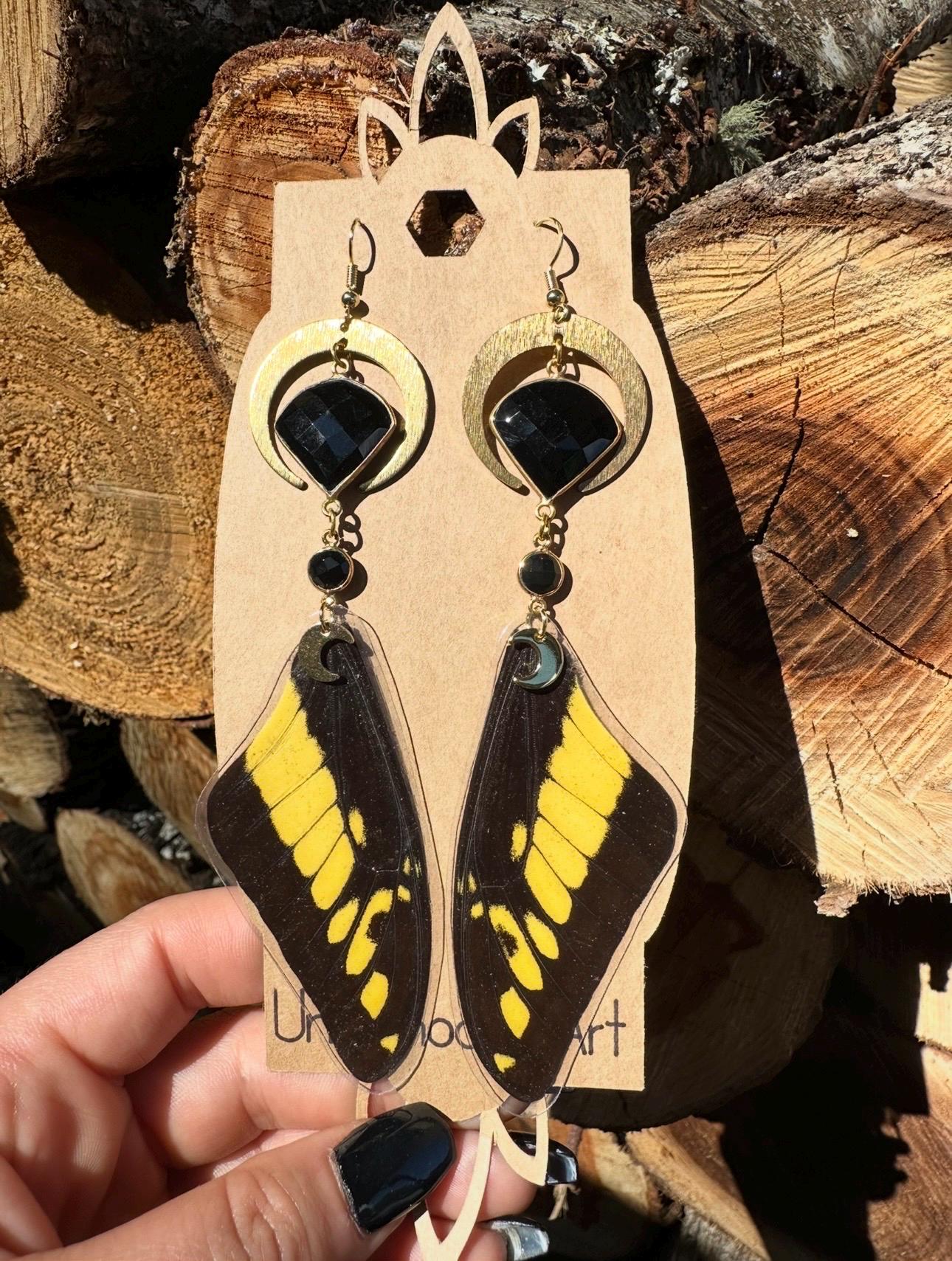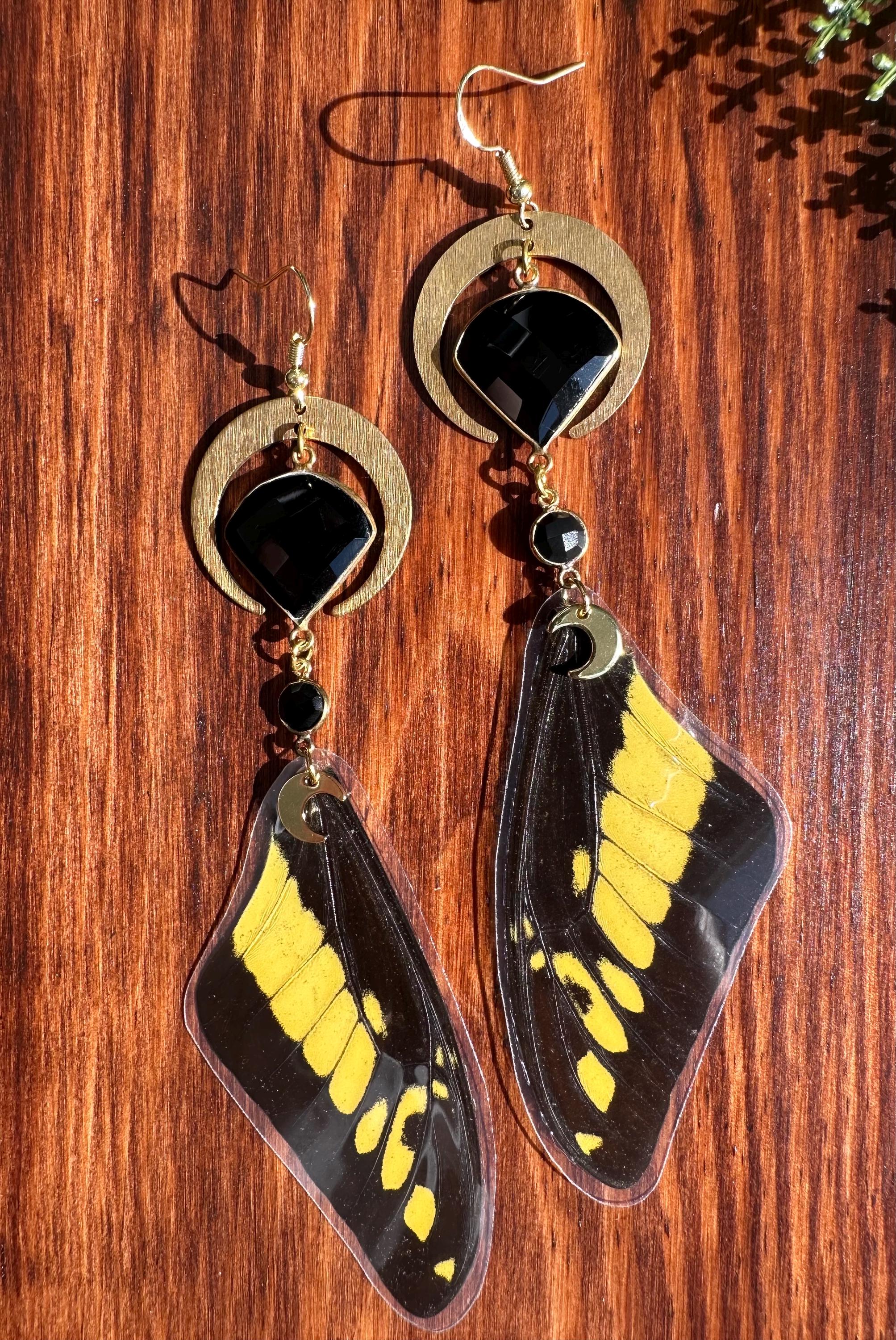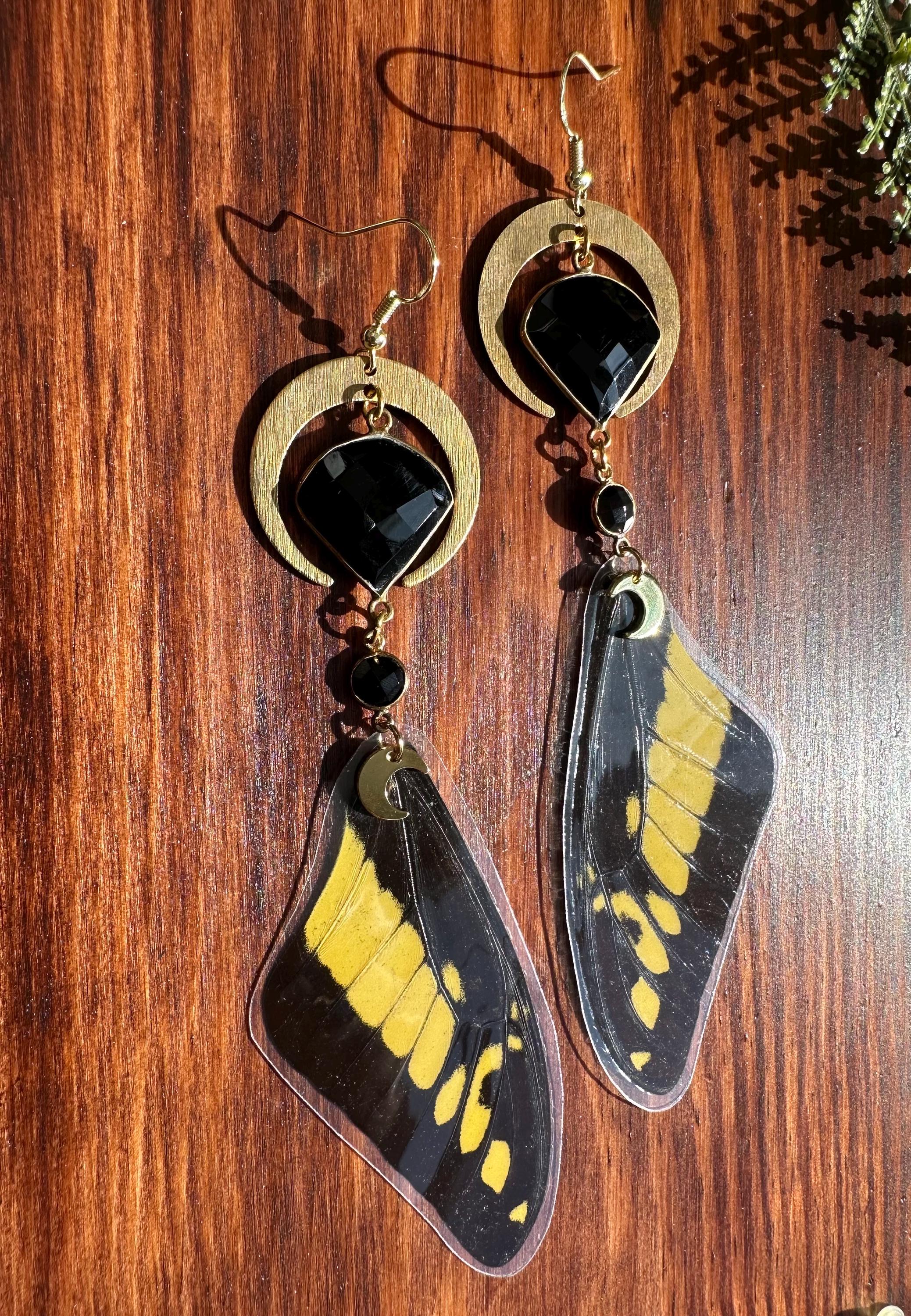 Black and yellow papilo butterfly wing earrings that are sure to grab attention!