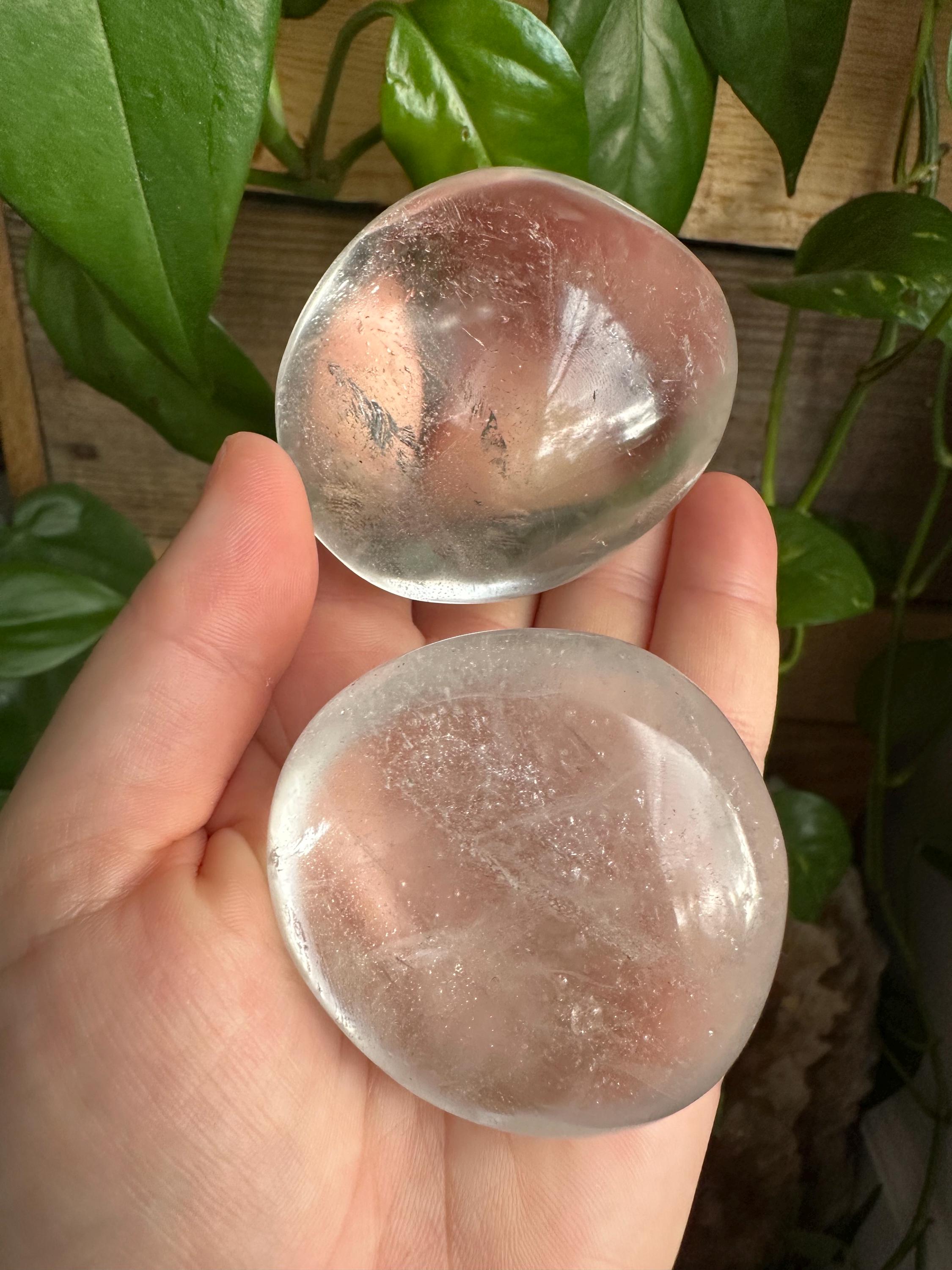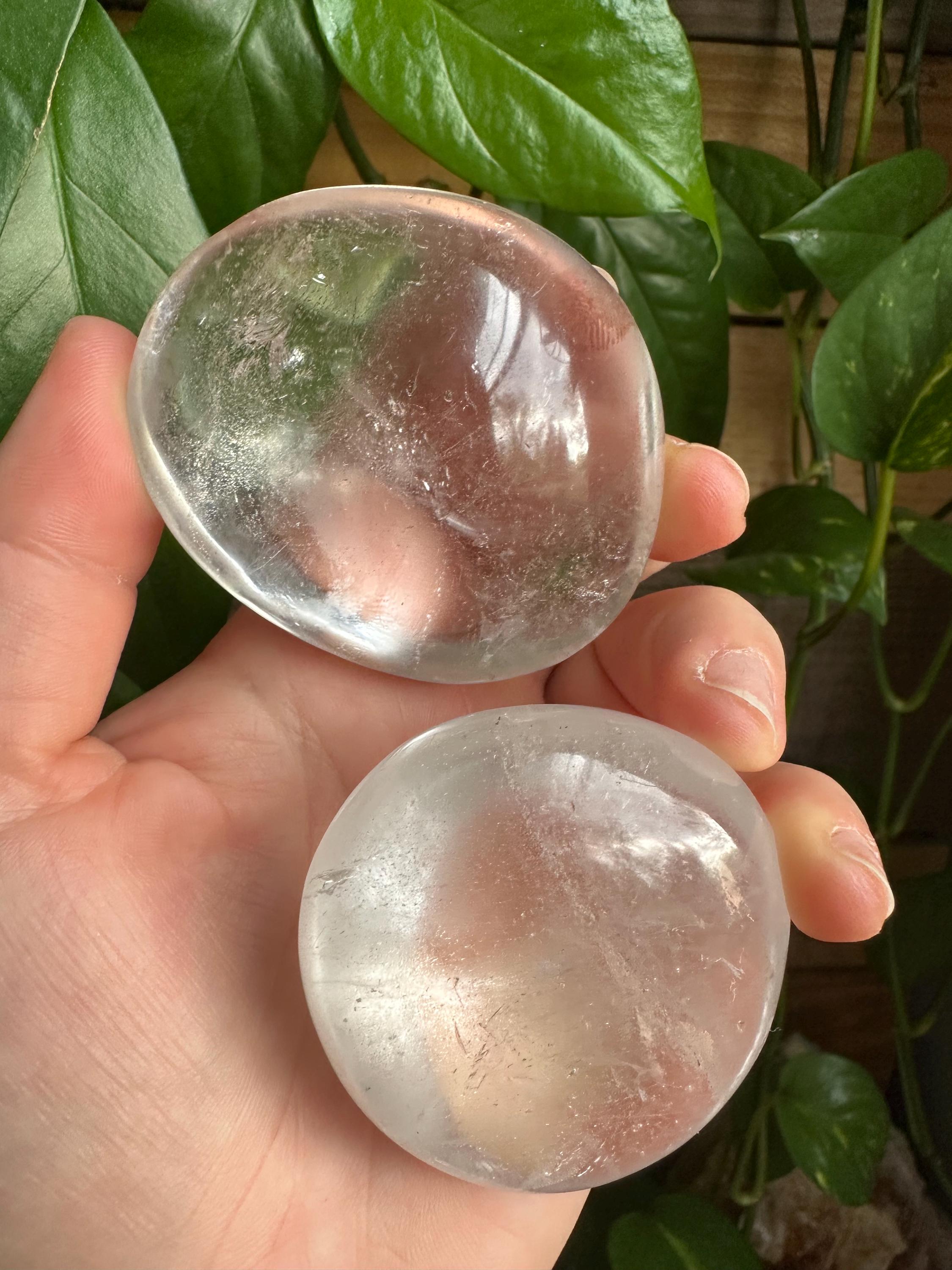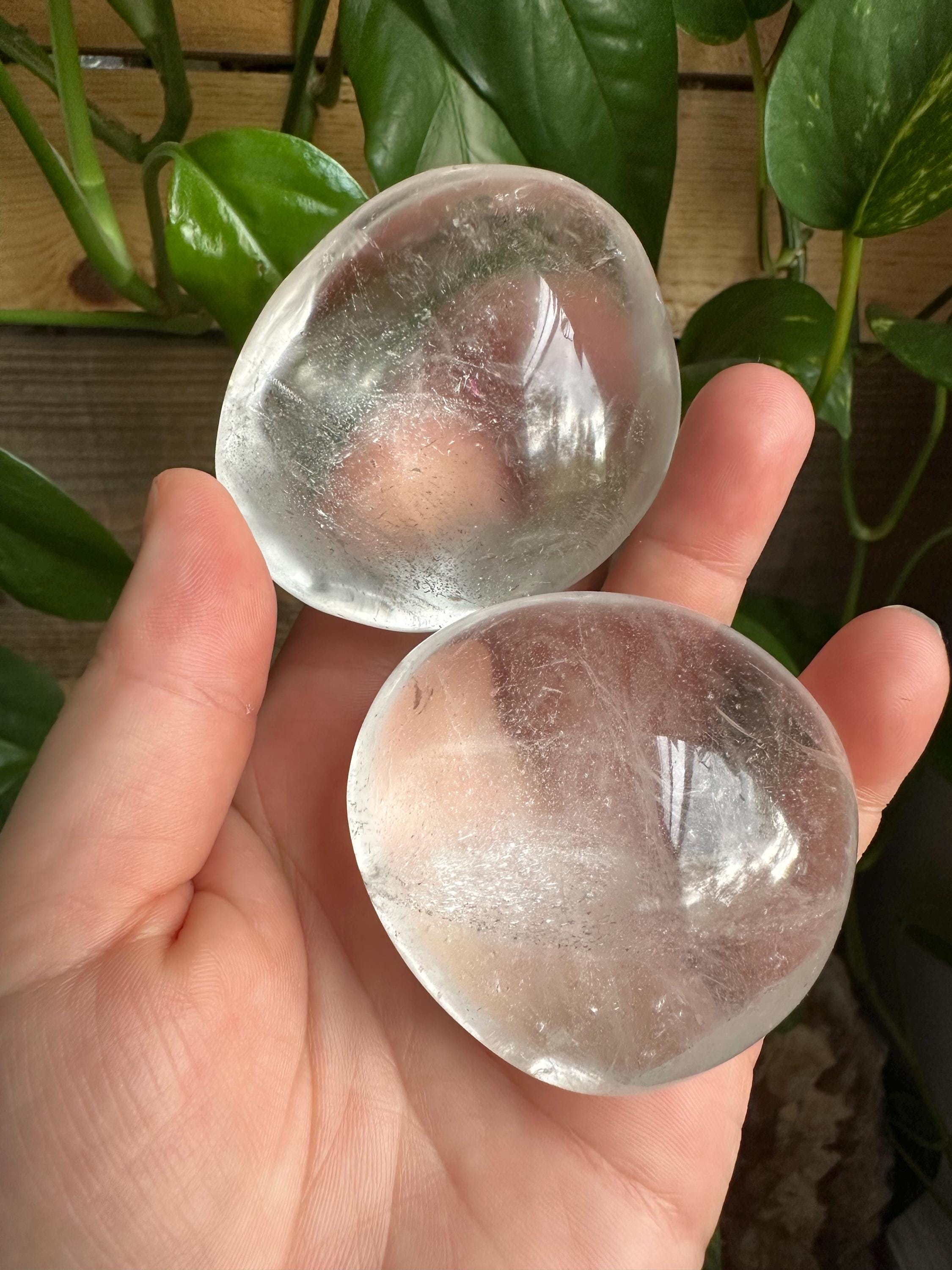 Clear quartz palm stones. The listing is for the two palm stones shown.