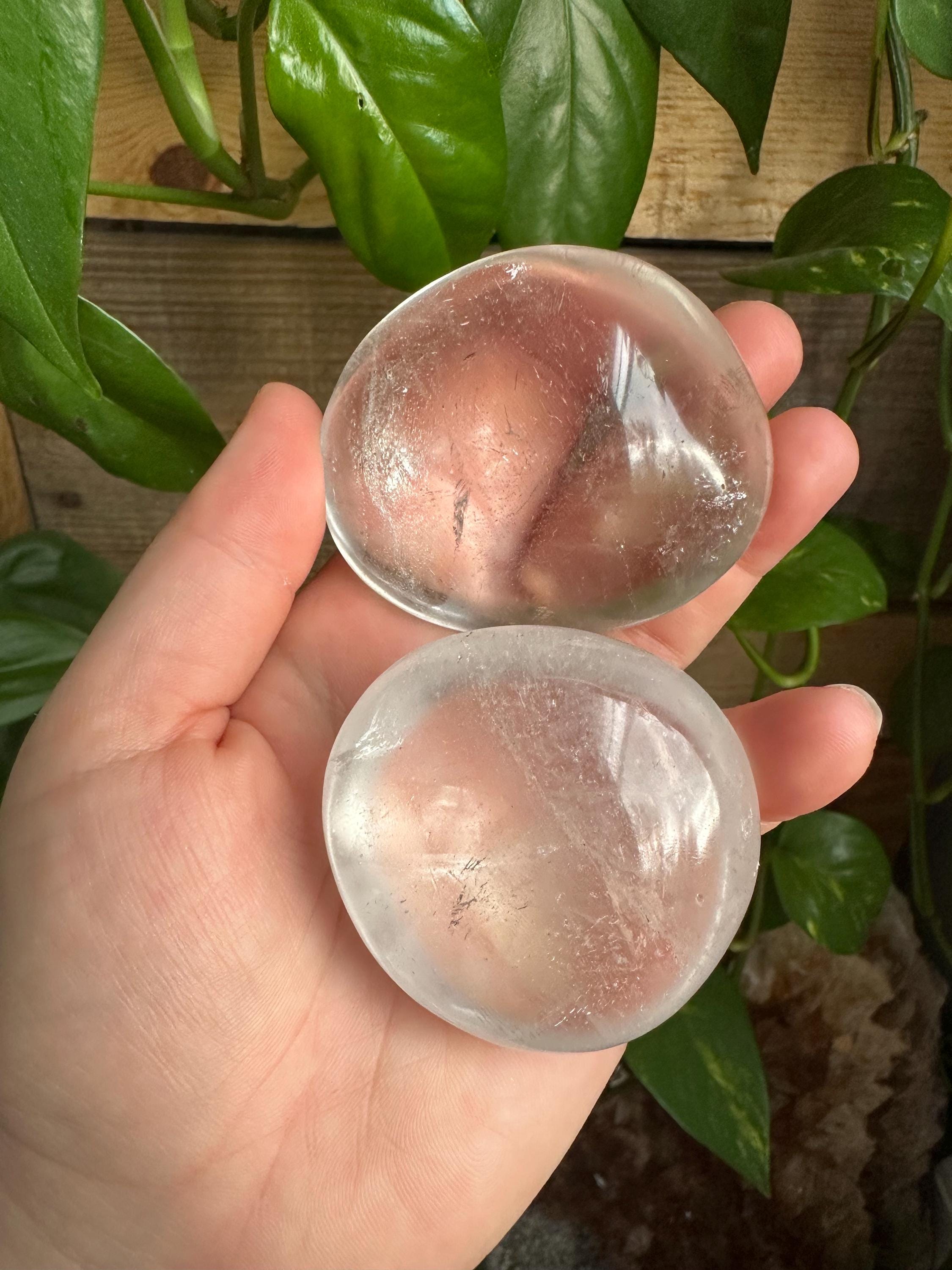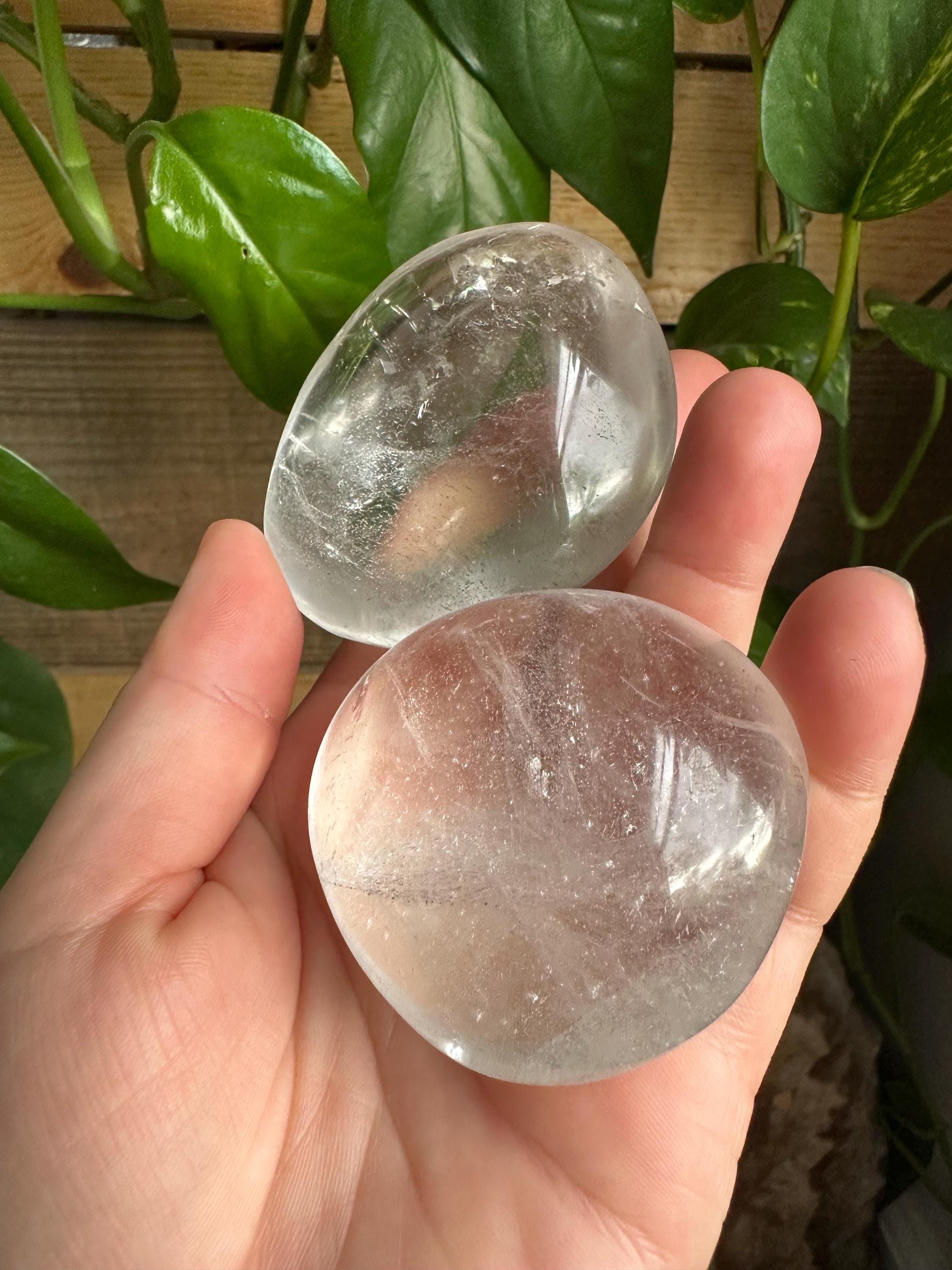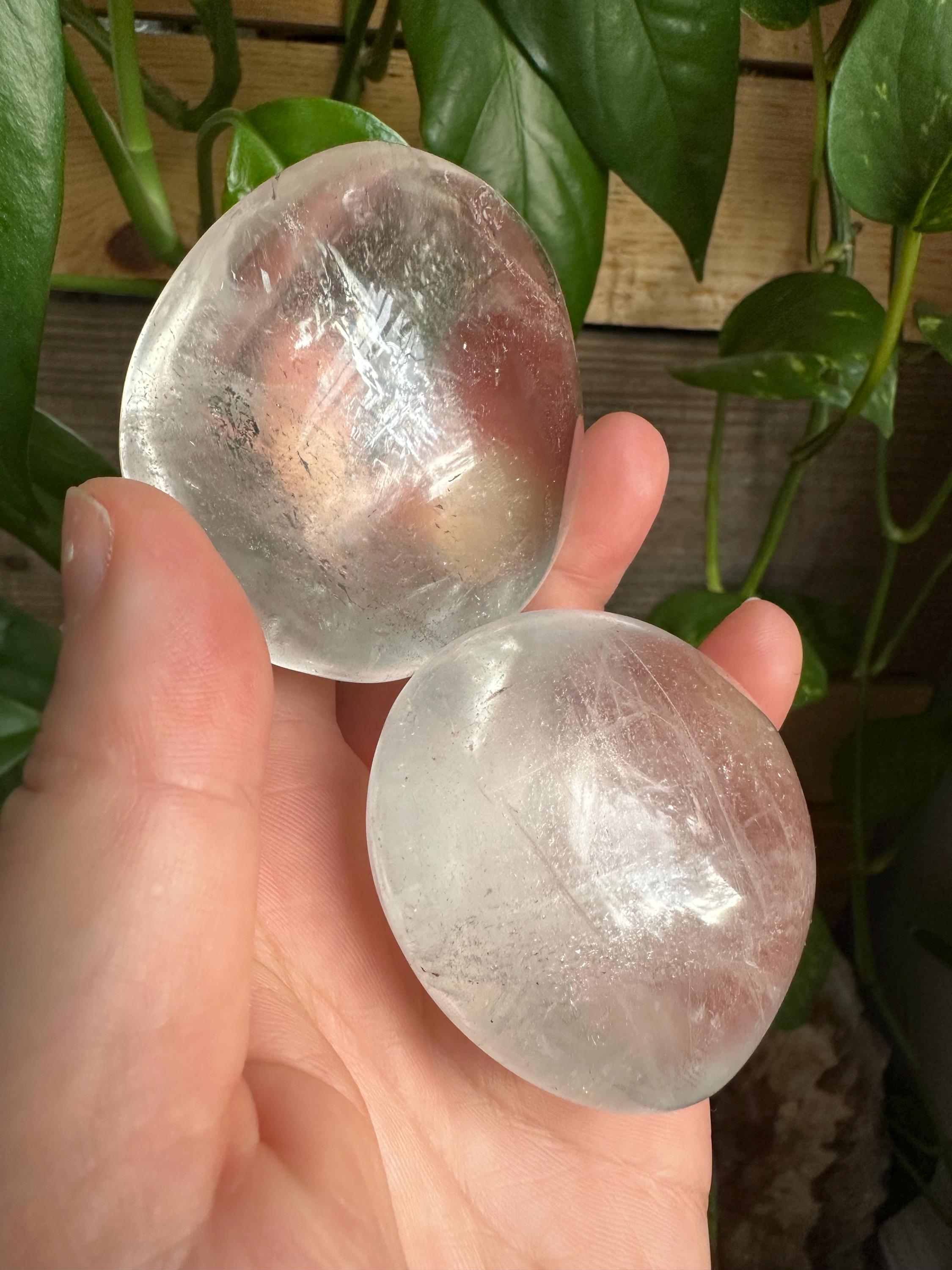 Clear quartz palm stones. The listing is for the two palm stones shown.