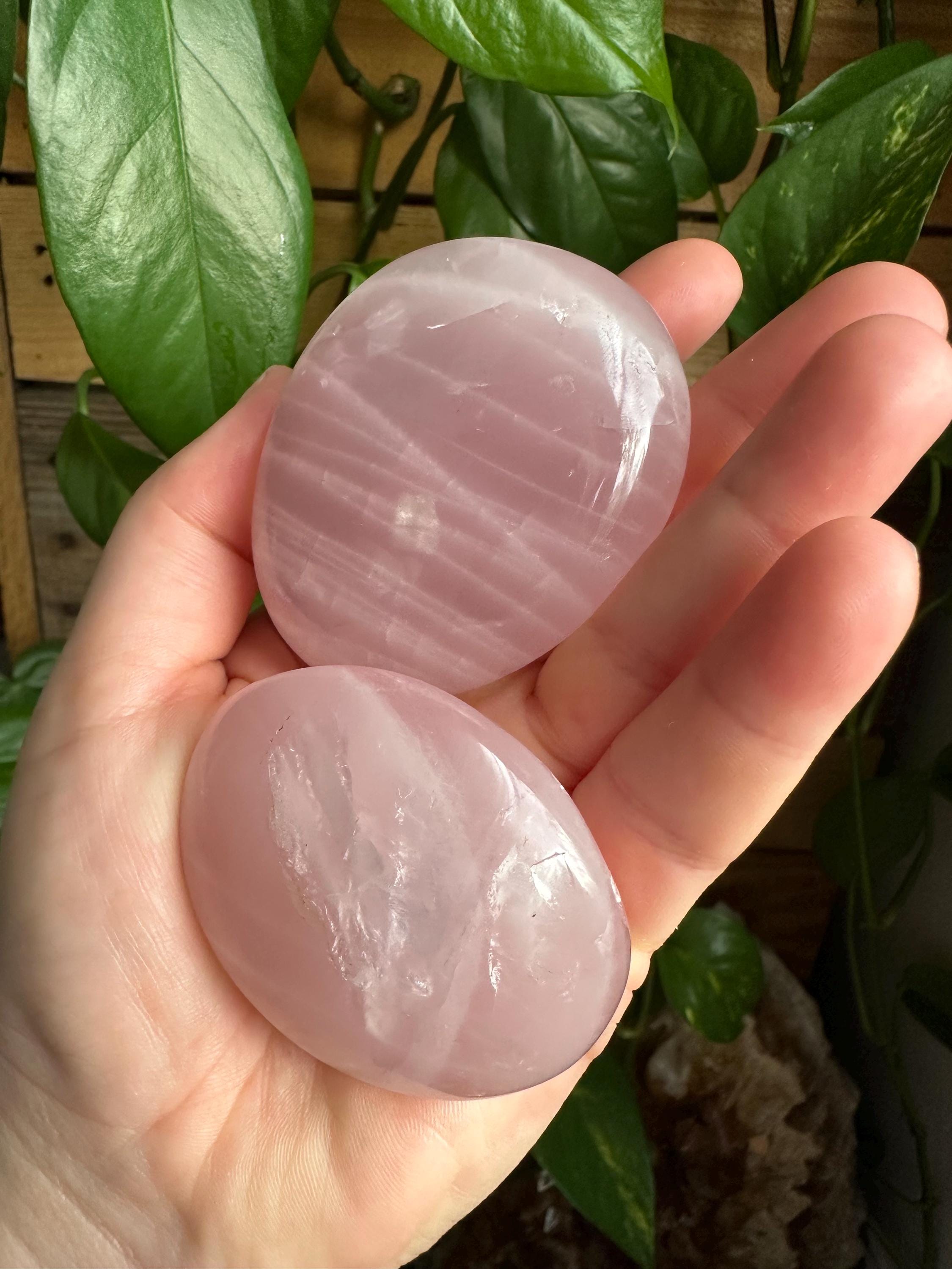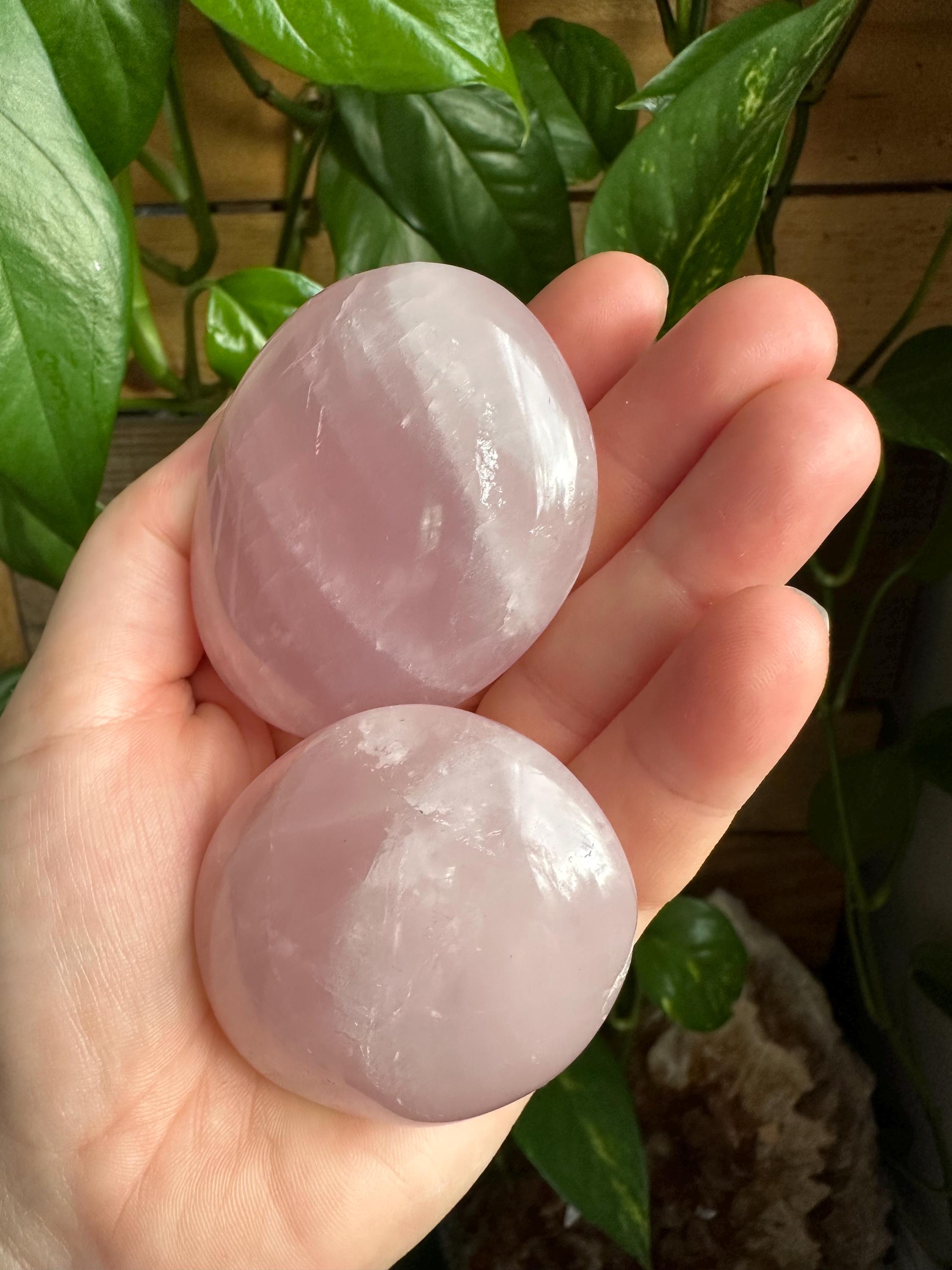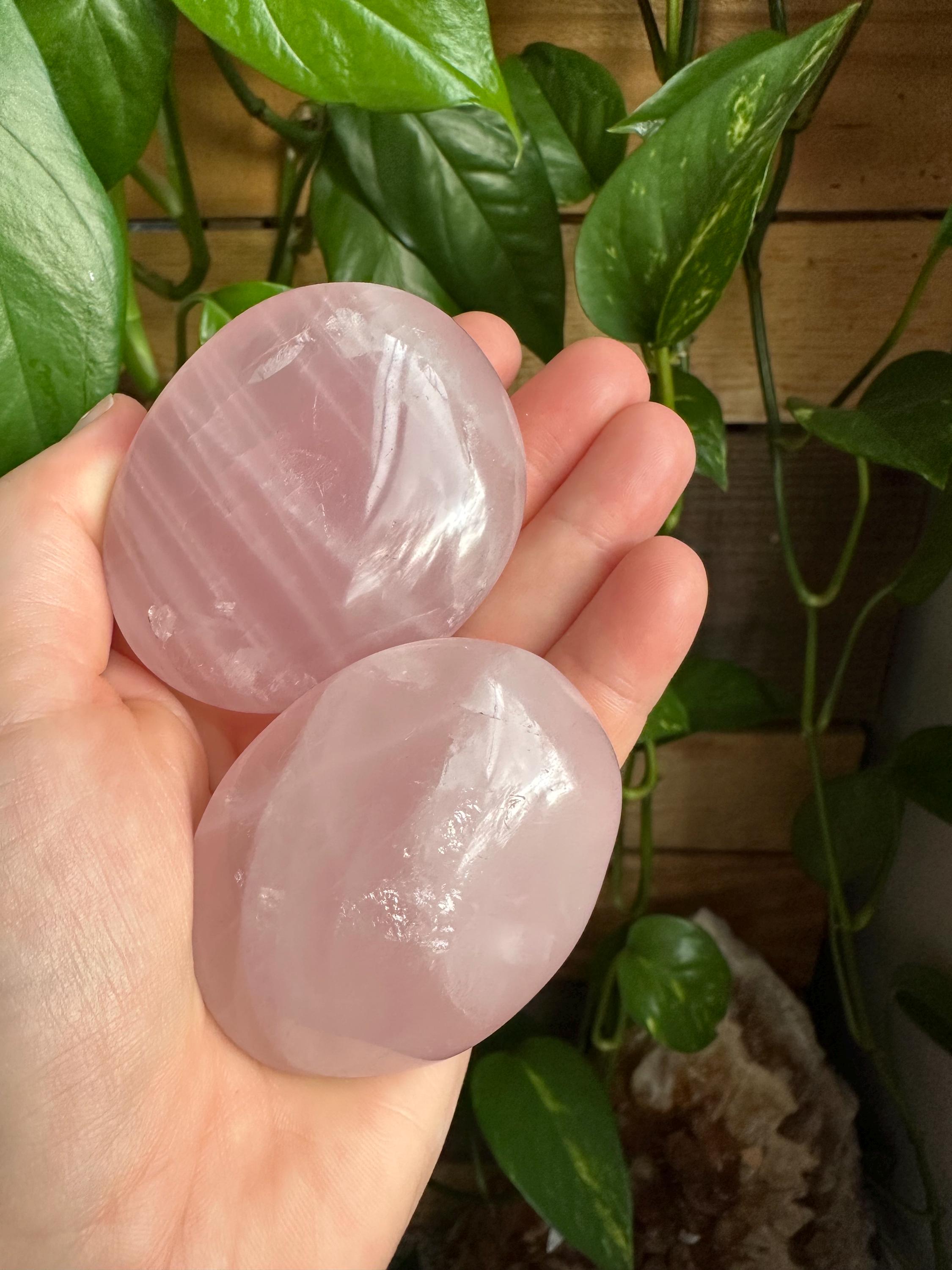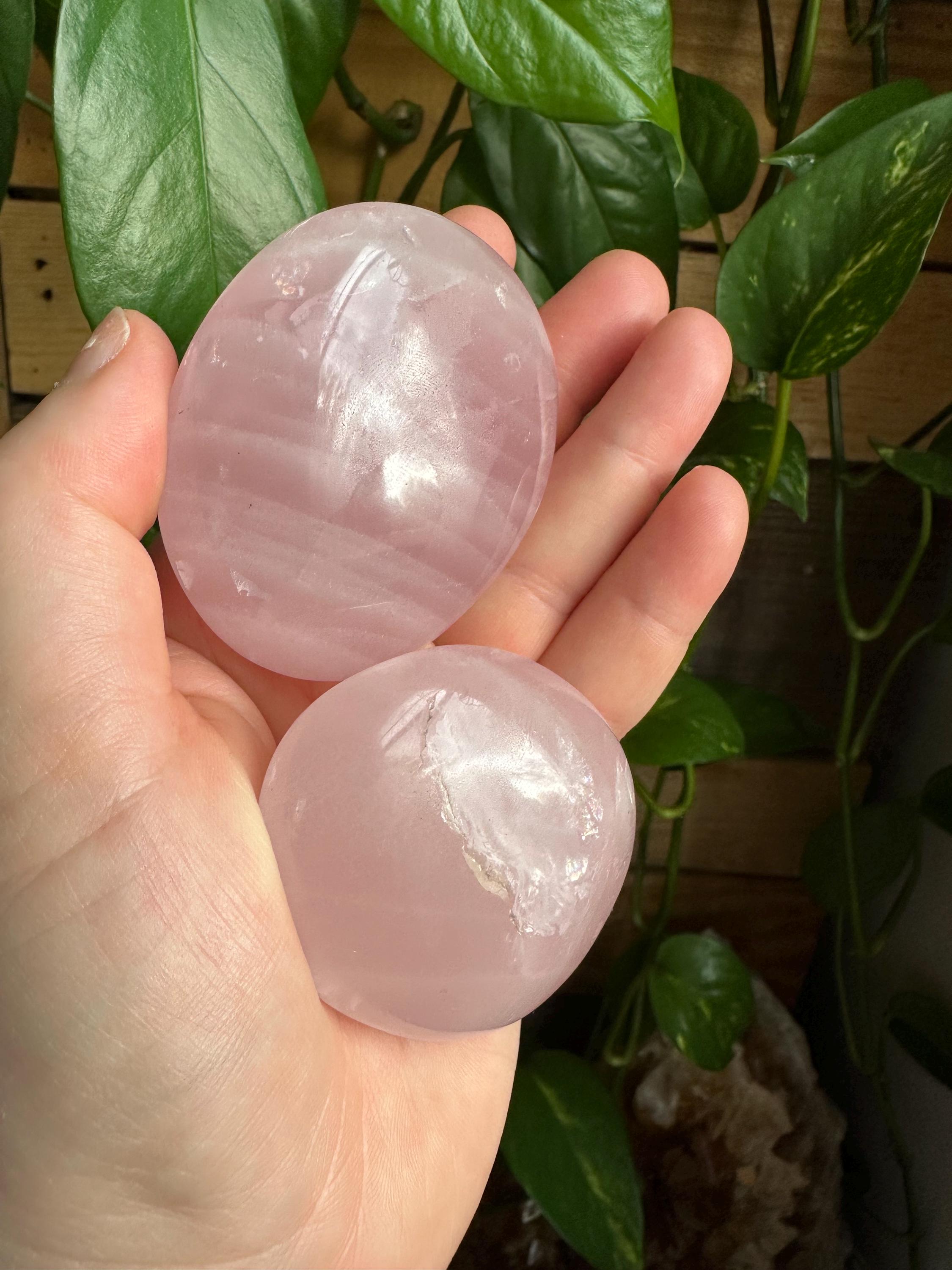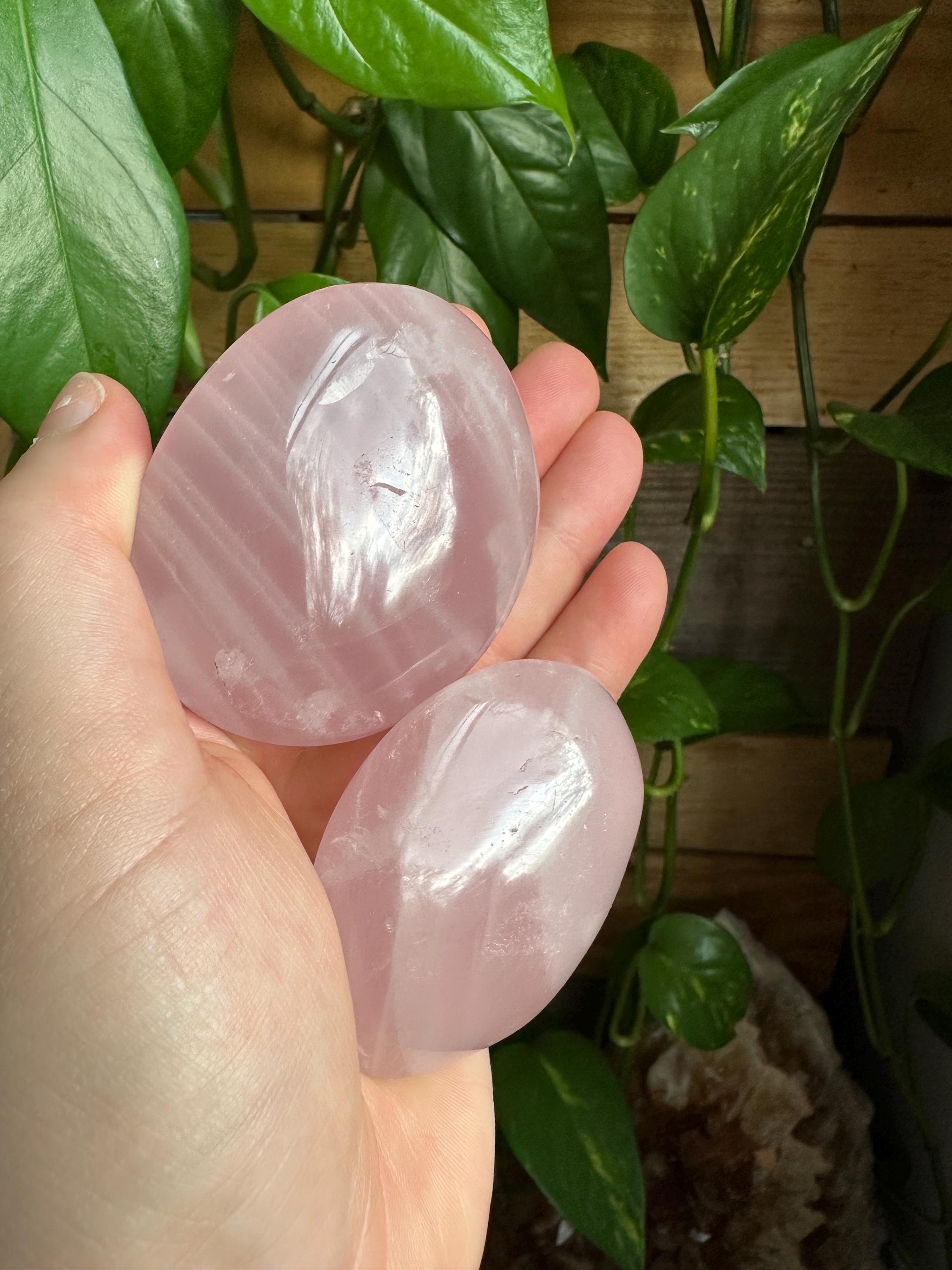 Rose quartz palm stones. The listing is for the two palm stones shown.