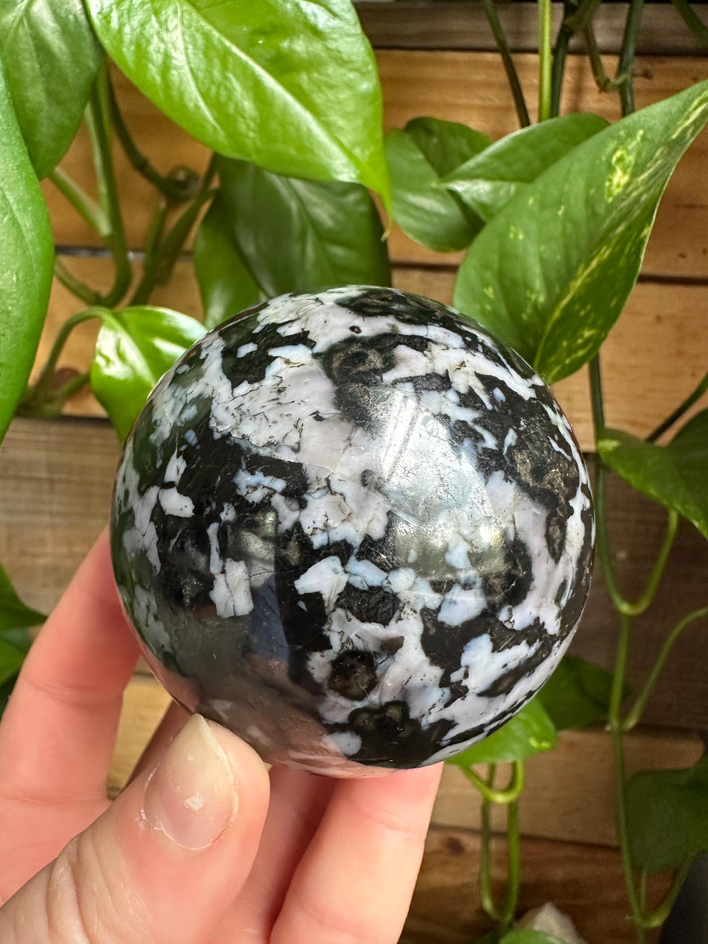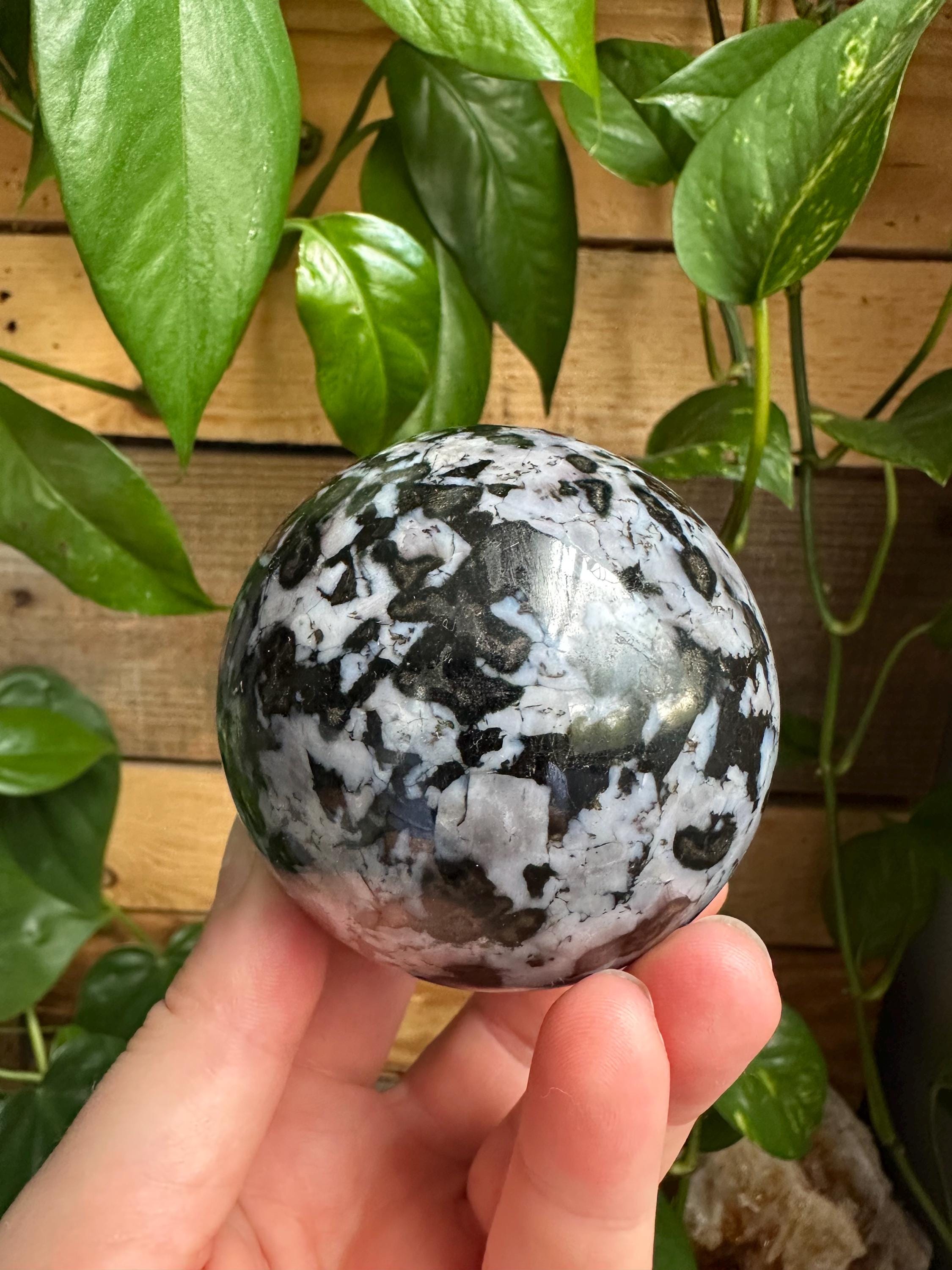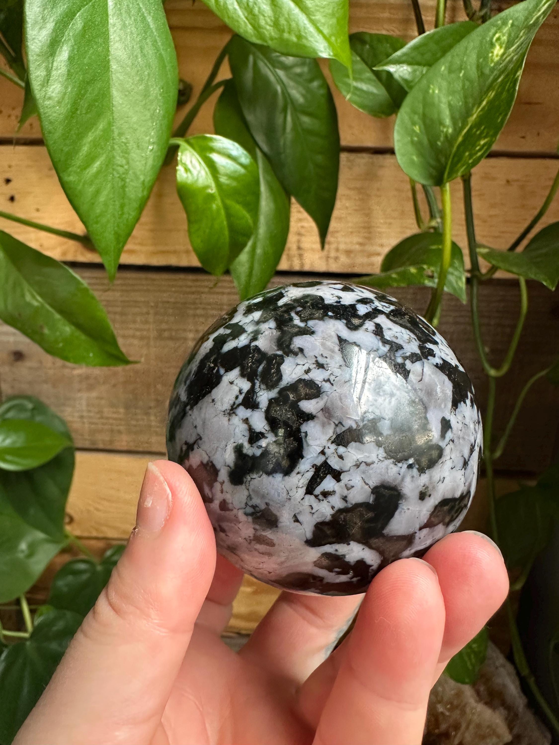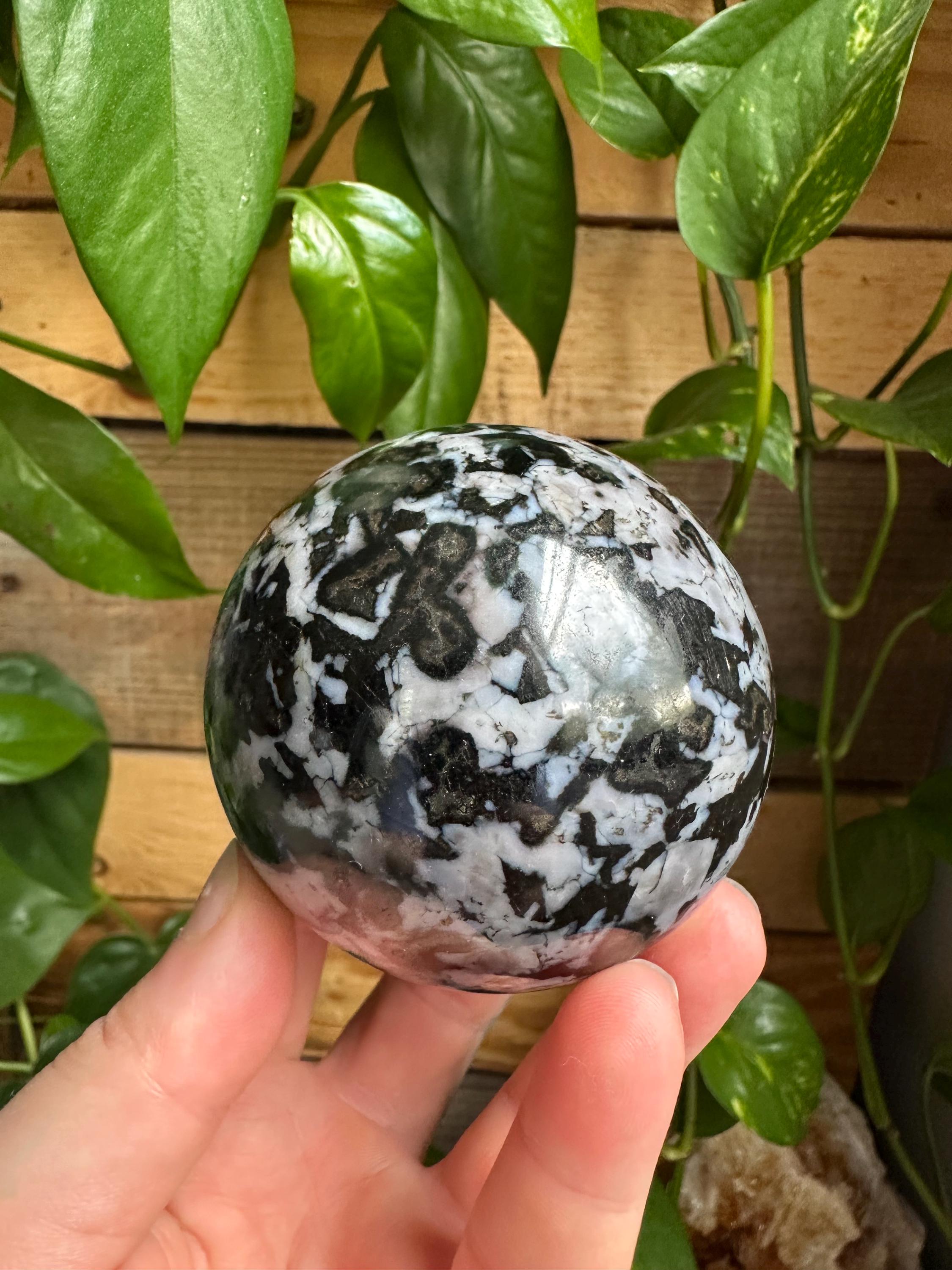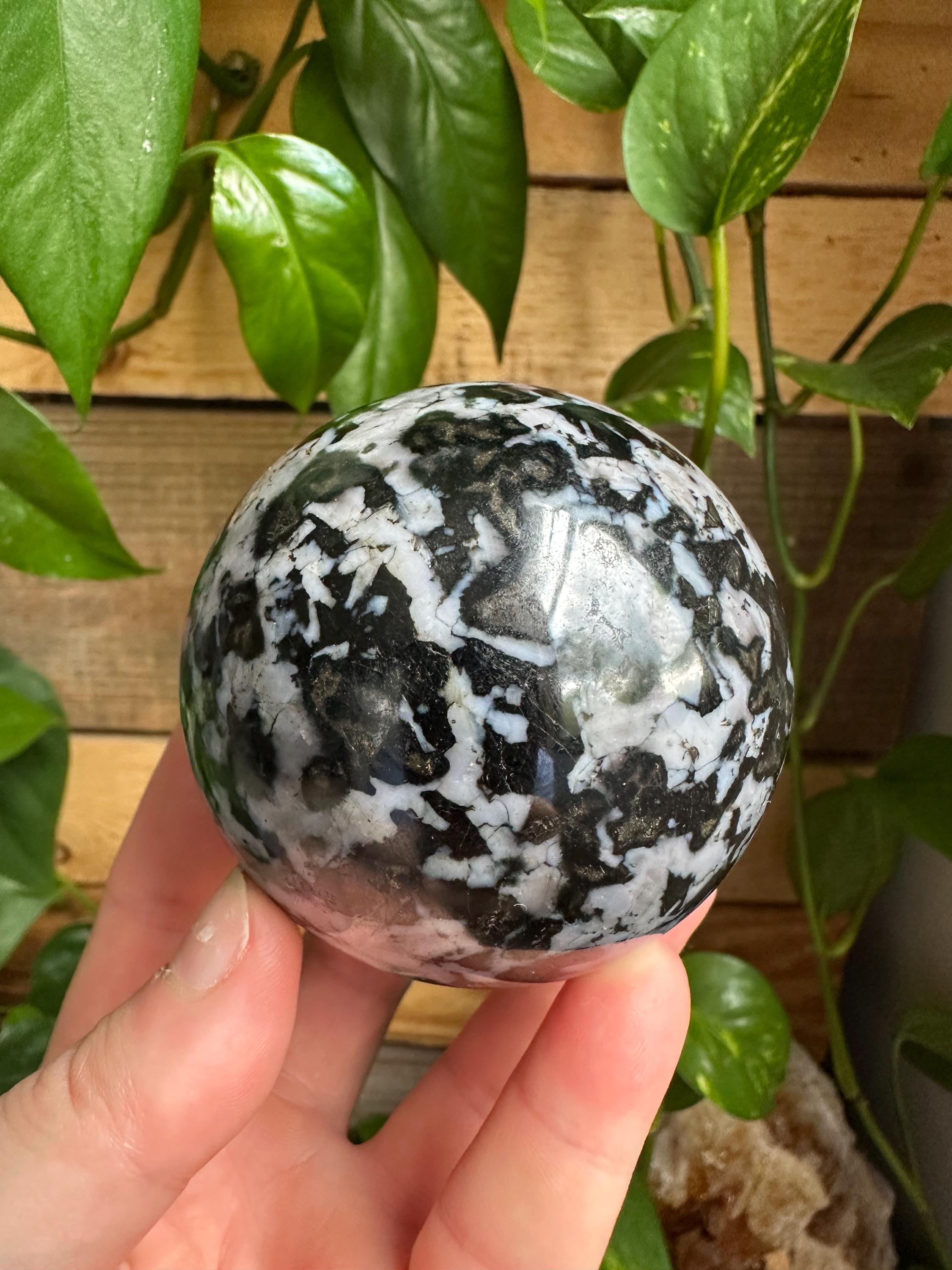 This indigo gabbro sphere is roughly 1 pound and 2 ounces.